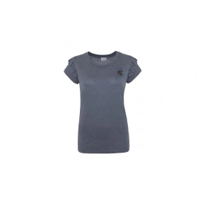 Koszulka - t-shirt damski z falbanami, ozdobiony motywem pszczoły na piersi wykonanym z koralików i