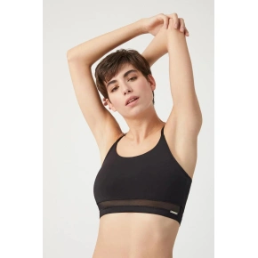 Damski top z przesuwanymi ramiączkami, dolna część topu z tiulową wstawką. Skład materiału: 90% poli