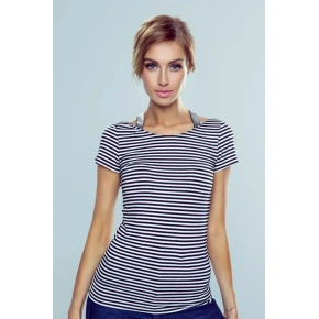 Luksusowa krótka koszulka damska bez ramiączek, z koronką na szyi. Skład materiału: 90% poliamid, 10