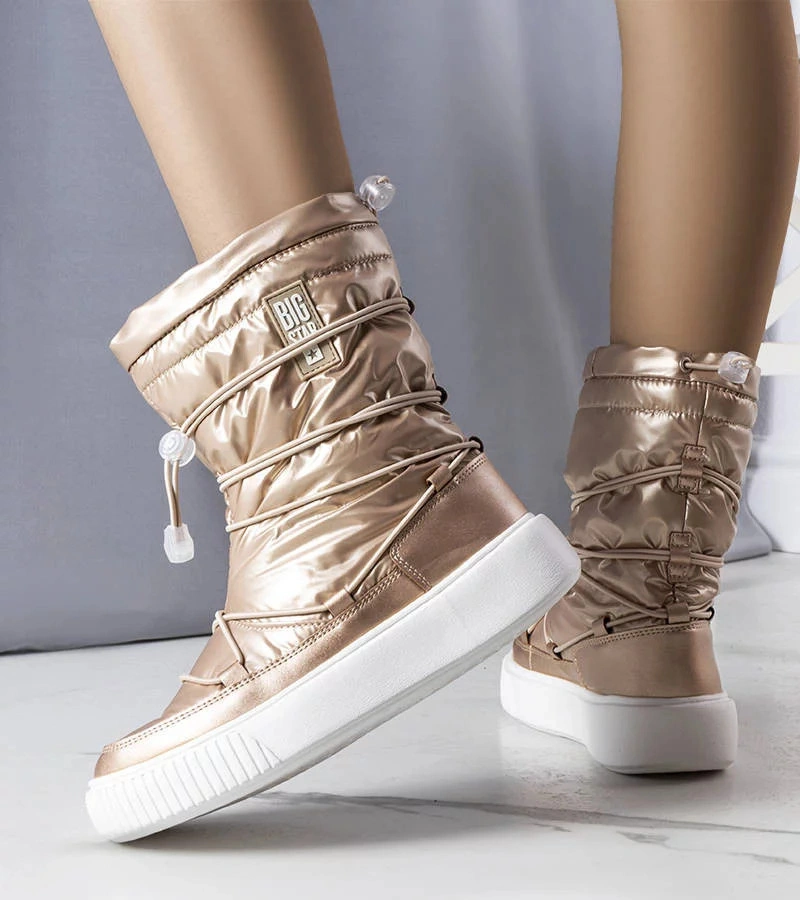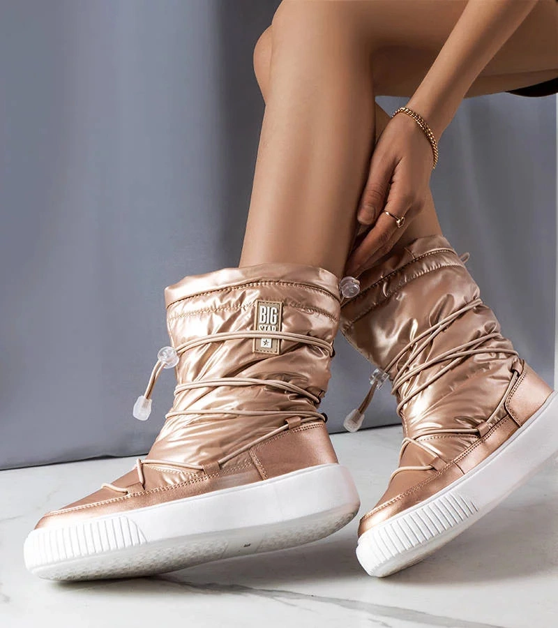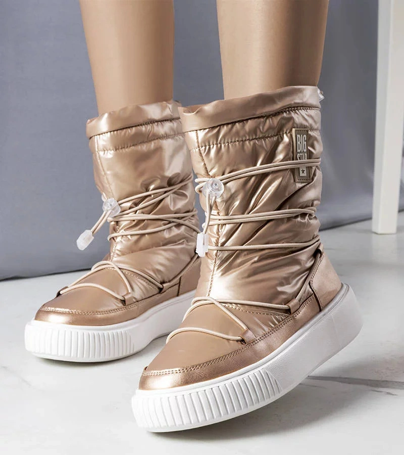 Damskie metaliczne ocieplane rakiety śnieżne INT1783B Beige - Big Star