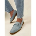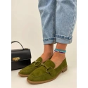 Klasyczne damskie mokasyny. Dzięki stylowemu zdobieniu na przodzie, buty zyskują niepowtarzalny urok... Mokasyny już na stałe zagościły w sercach kobiet : ) Zawsze będziesz w nich wyglądać modnie i czuć się komfortowo... Materiał zewnętrzny - zamsz ekologiczny.