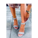 Damskie sandały z zamszu. Klasyczny krój tego modelu uzupełnia stabilny obcas o wysokości 9,5 cm. Dzianinowe paski dodają butom uroku i sprawiają, że są jeszcze bardziej wyjątkowe i przyciągają wzrok. Po prostu musisz je mieć! Materiał zewnętrzny - zamsz ekologiczny.