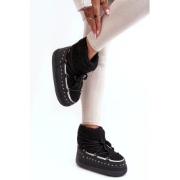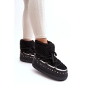 Wyjątkowe damskie rakiety śnieżne są wykonane z materiału odpornego na zimno i wiatr. Cholewka ze sztucznej skóry owczej i ćwiekami będzie idealna na sezon jesienno-zimowy. Klasyczny wsuwany model z dodatkowym sznurowaniem. Rakiety śnieżne zostały ustawione na masywnej platformie. Wewnątrz mają izolację w postaci pianki i koca obuwniczego, który zapewnia wysoką ochronę w chłodne dni.