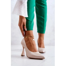 Te czółenka to tegoroczny HIT! Stoją na modnym obcasie, który zwęża się ku górze i jest szerszy u dołu. Buty wykonane są z wysokiej jakości skóry naturalnej. Szpiczasty nosek. Dzięki nowoczesnemu obcasowi fason ten jest bardziej stabilny niż klasyczne szpilki. Wkładka ze skóry naturalnej jest bardzo miękka i wygodna w noszeniu. Pompony te są idealne na zjazdy rodzinne, spotkania biznesowe lub randki!