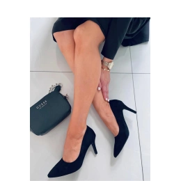 Klasyczne czółenka na szpilce. Ten wyjątkowy model zachwyca ponadczasowym fasonem na wygodnym obcasie o wysokości 8 cm. Model ma wyprofilowany nosek na szpilce - pięknie prezentuje się na stopie : ) Niezbędny element garderoby każdej kobiety! Materiał zewnętrzny - zamsz ekologiczny.