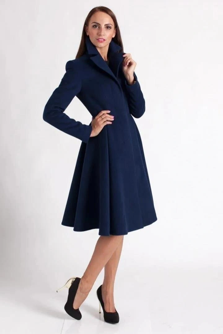 Dámský dlouhý kabát PLA021 - Mattire tmavě modrá 40