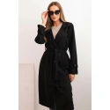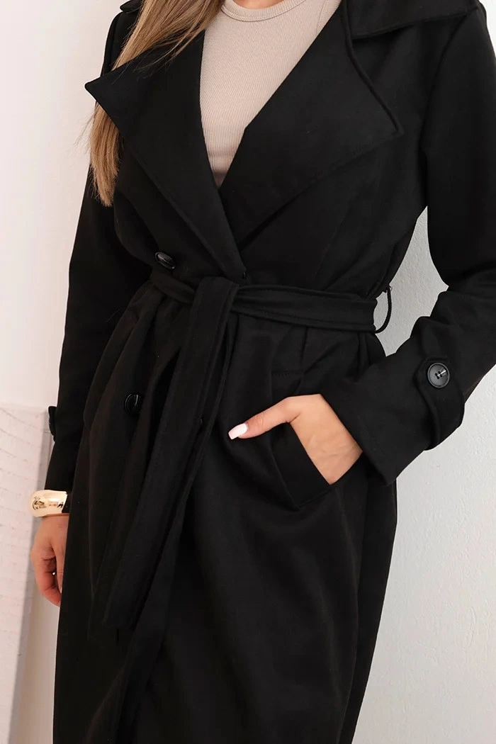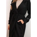 Elegantní dámský kabát s klasickým, prodlouženým střihem je skvělým návrhem na podzimní a zimní sezónu pro ženy, které ocení styl a pohodlí. Model je vybaven širokým límcem, praktickými kapsami a páskem v pase, který krásně zvýrazňuje siluetu. Délka nad kolena a dvojité zapínání na knoflíky dodávají kabátu elegantní, nadčasový charakter.