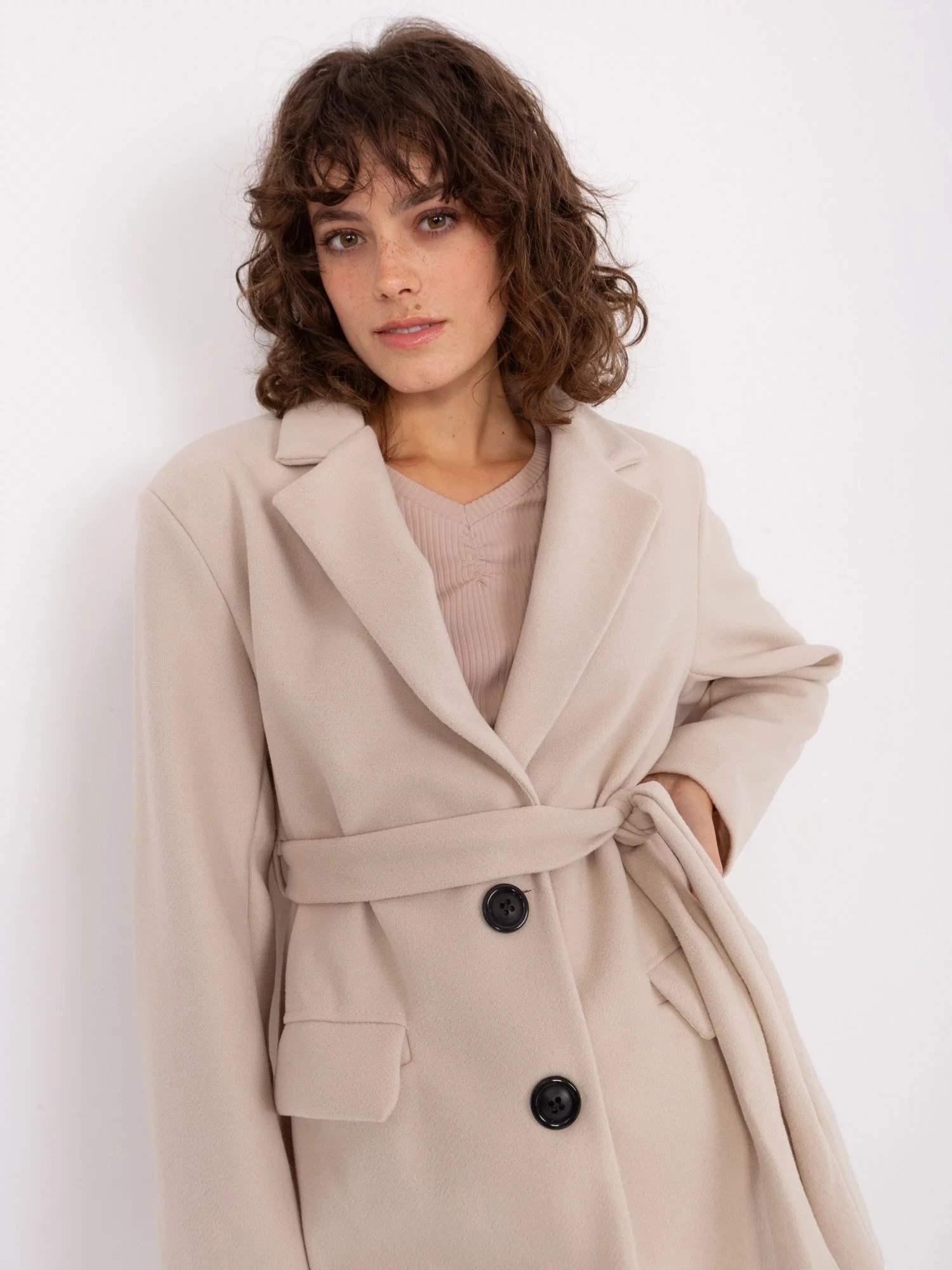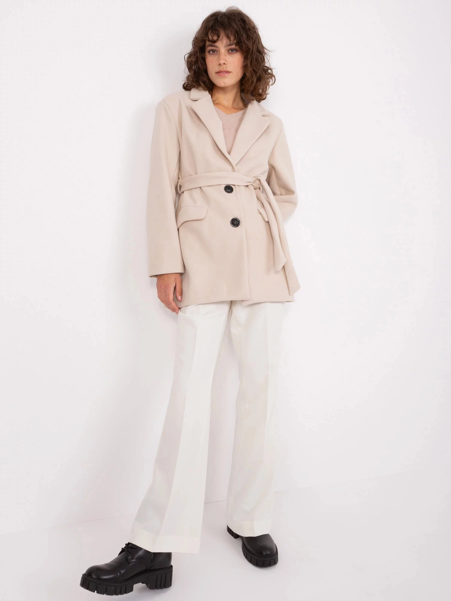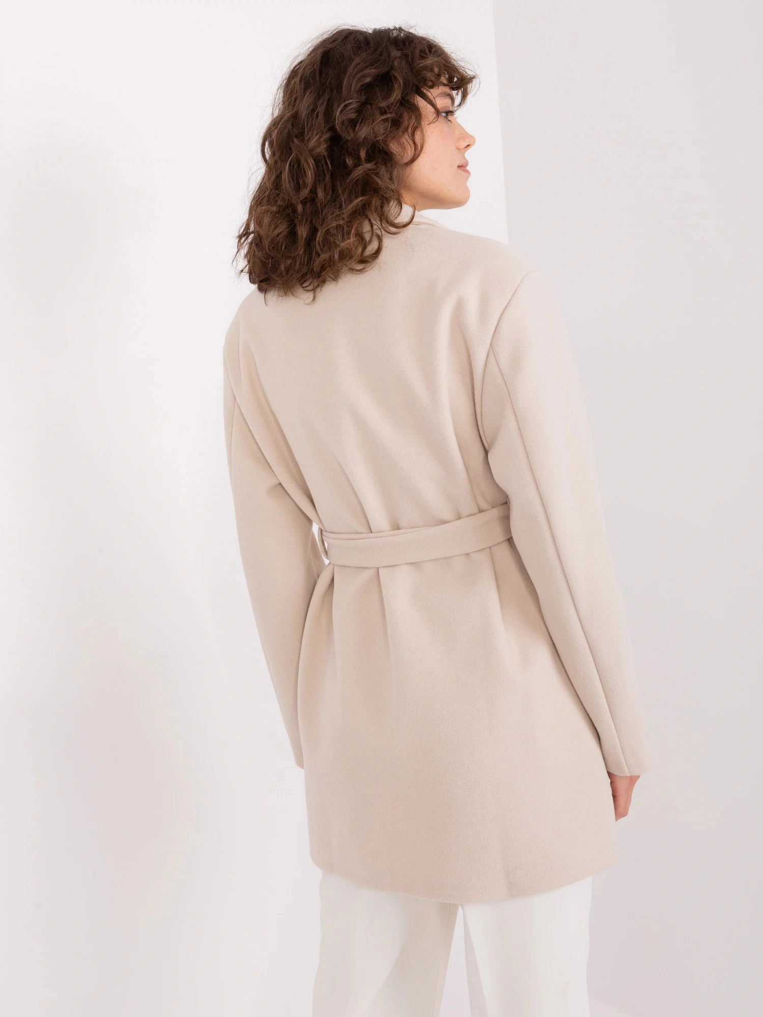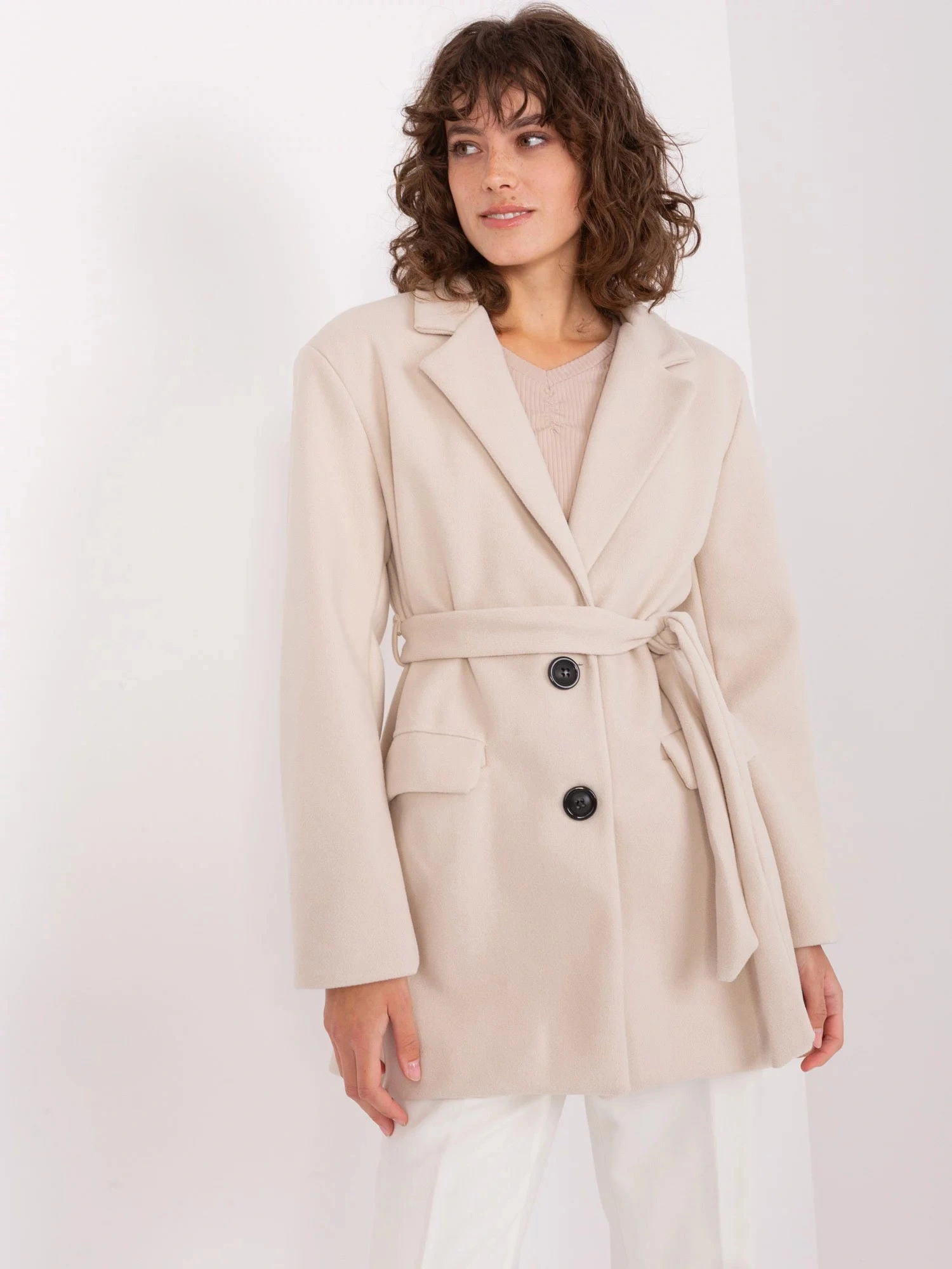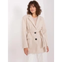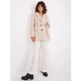 Světle béžový krátký kabát s páskem OCH BELLA .
