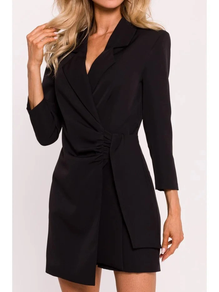 INFORMACE O PRODUKTU: tkaný kostým s límcem vázaným na boku skrytý boční zip uvnitř bez podšívky naše modelka je vysoká 171 cm a nosí velikost S navrženo a vyrobeno v Polsku