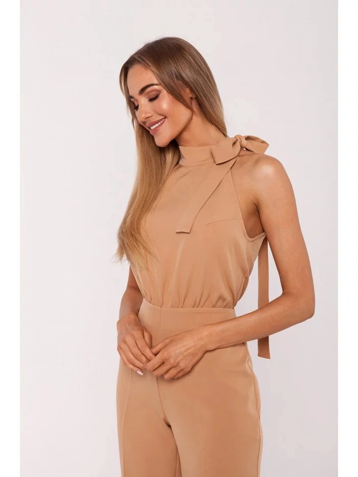 Ten spłaszczający sylwetkę kombinezon ma dekolt na ramiączkach i wiązane detale. INFORMACJE O PRODUKCIE: jednoczęściowy kombinezon z tkanego materiału z dekoltem na ramiączkach i wiązanymi detalami marszczona talia szerokie nogawki z bocznymi kieszeniami ukryty zamek błyskawiczny z tyłu Nasza modelka ma 171 cm wzrostu i ma na sobie rozmiar S