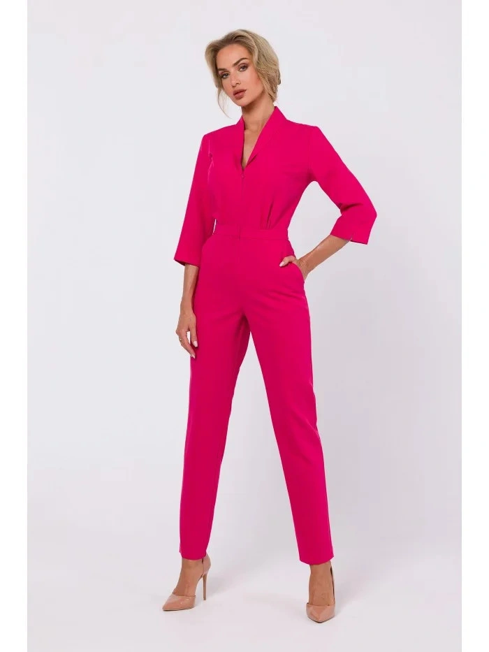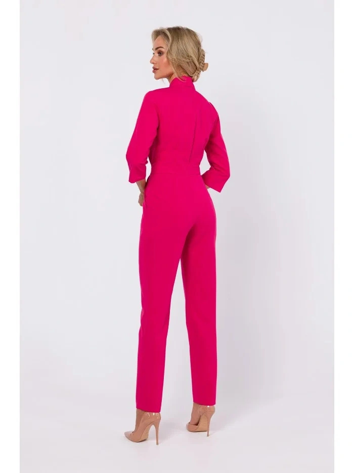 INFORMACE O PRODUKTU: kombinéza z tkané látky s šálovým límcem zapínání na zip přední nohy s ozdobným prošíváním vpředu 3/4 rukávy s rozparky naše modelka je vysoká 171 cm a nosí velikost S Navrženo a vyrobeno v Polsku