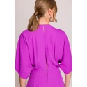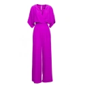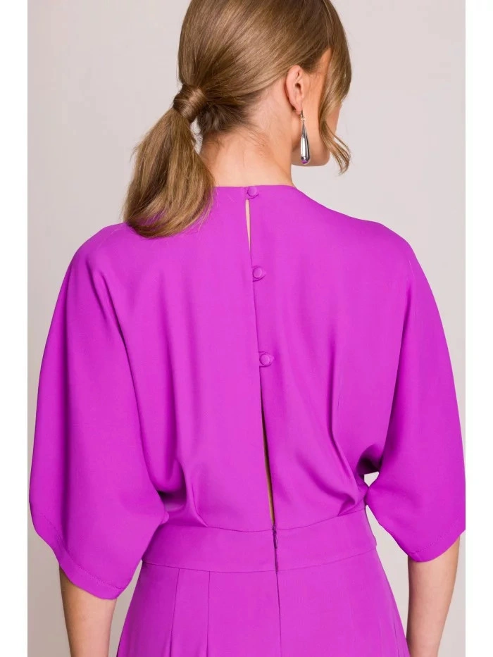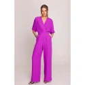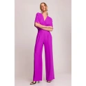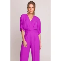 95% poliester 5% elastan SZCZEGÓŁY PRODUKTU: tkany materiał jednoczęściowy kombinezon zawijany dekolt V z zakładkami krótkie rękawy szerokie nogawki boczne kieszenie ukryty zamek z tyłu nasza modelka ma 175 cm i nosi rozmiar S zaprojektowano i wykonano w Polsce