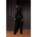 Kombinezon Asurio to idealna propozycja dla kobiet, które w spodniach czują się bardziej komfortowo niż w sukienkach. Kombinezon wykonany jest z tkaniny zdobionej cekinami. Posiada elastyczną podszewkę, która chroni przed zadrapaniami. Model z długimi, szerokimi nogawkami, asymetrycznym dekoltem pokrytym bogatą ilością cekinów. Bez względu na to, gdzie się wybierasz, na imprezę, do klubu czy na wielki bal, elegancki kombinezon maxi Asurio zapewni Ci wygodę w sylwestrową noc i doda uroku. Wystarczy dobrać do niego nowoczesne, minimalistyczne dodatki, by błyskawicznie stworzyć niepowtarzalny look. Elegancki kombinezon maxi Asurio zrobi tak duże wrażenie, że z powodzeniem zastąpi wieczorową sukienkę. Produkt wykonany i uszyty w Polsce.