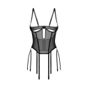 Minimalistický tvar s maximálním účinkem. Korzet Euphori je určen pro ženy, které se nebojí odhalit své tělo i sebevědomí. Jeho otevřená struktura bez košíčků s kosticemi pod prsy zvýrazňuje poprsí a podněcuje fantazii. Poloprůsvitná látka a svislé kostice smyslně tvarují pas, zatímco odnímatelné podvazkové pásky vám umožňují hrát podle vlastních pravidel. Tento korzet neodhaluje vše – protože ty nejvzrušující věci často zůstávají nevyřčeny...