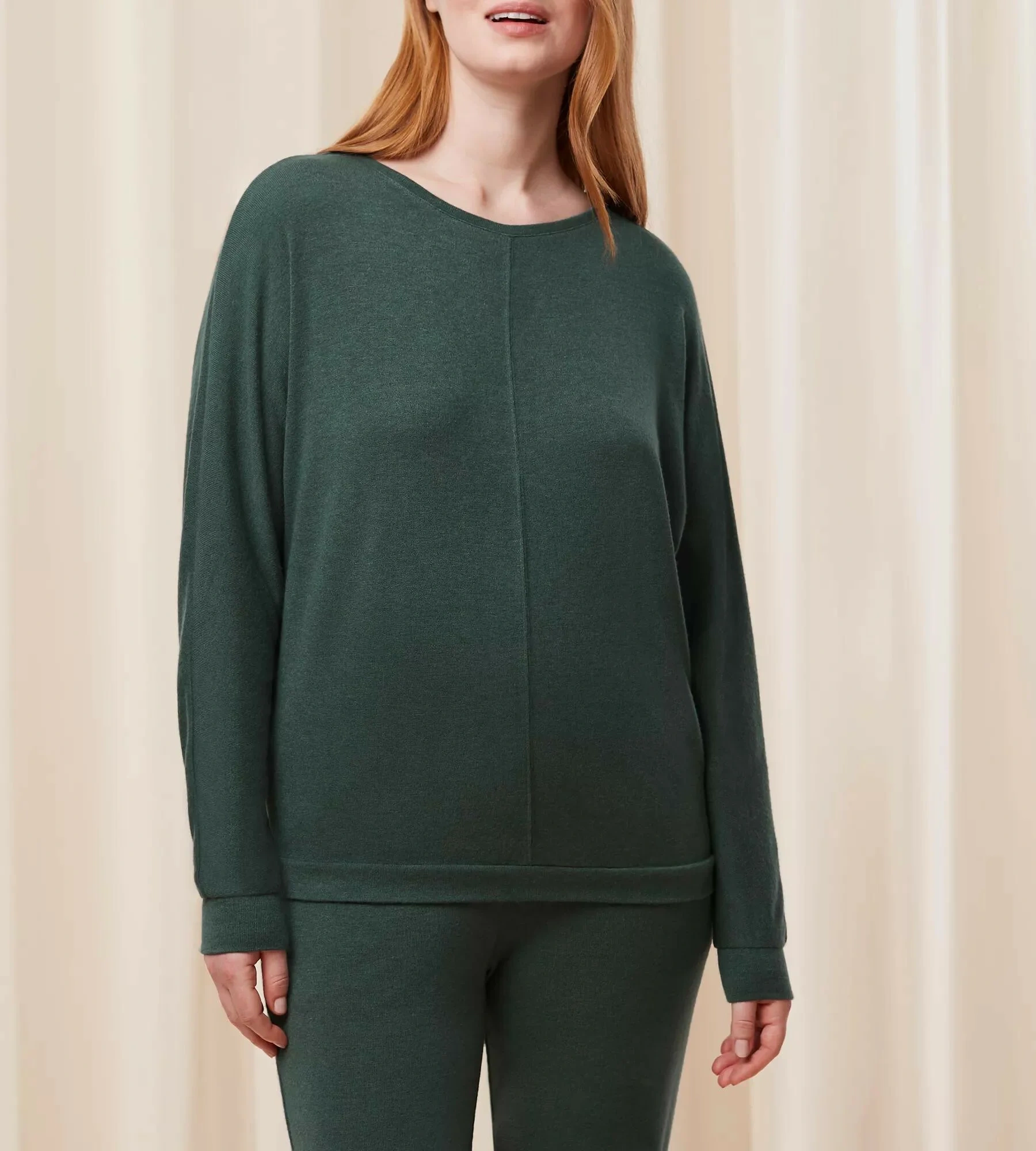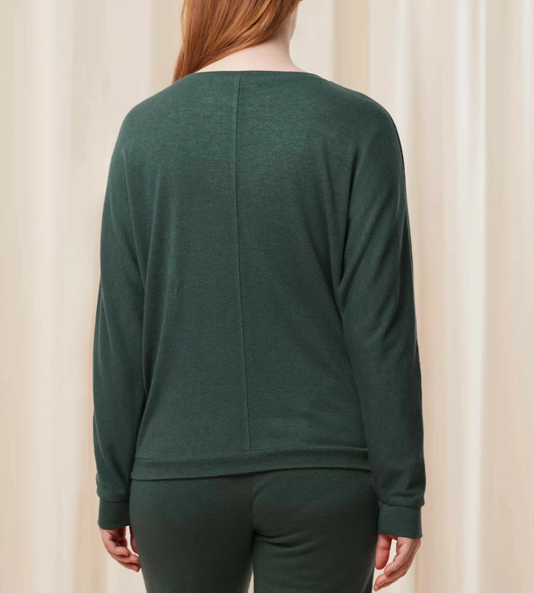 Oblečení na doma s trochou lásky navíc. Tento jemný a příjemný top jsme navrhli tak, abyste se v něm cítila volně a pohodlně. Lodičkový výstřih a rozšiřující se rukávy mu dodávají extra porci stylu.