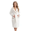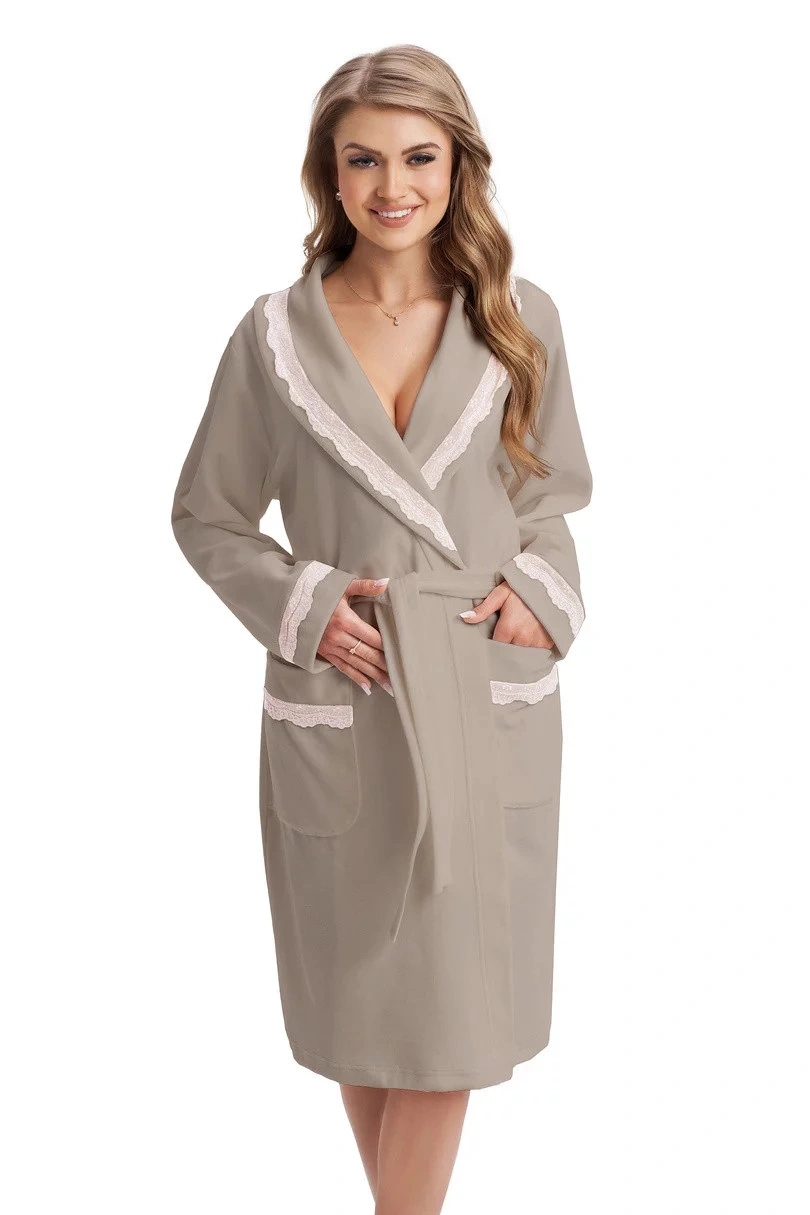 Elegancki damski welurowy szlafrok. Kołnierz i kieszenie obszyte koronką.