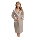 Damski satynowy szlafrok z rękawami 3/4. Rękawy wykonane są z koronki z motywem kwiatowym. Model wią