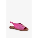 Damskie sandały z zamszu ekologicznego to elegancki wybór na ciepłe dni. Osadzone na płaskim obcasie, zapewniają wygodę i stabilność. Zapinane na regulowane paski z klamrami, pozwalają na idealne dopasowanie do stopy. Zdobienie z przodu dodaje subtelnej elegancji, dzięki czemu są świetnym dodatkiem zarówno do codziennych, jak i bardziej formalnych stylizacji.