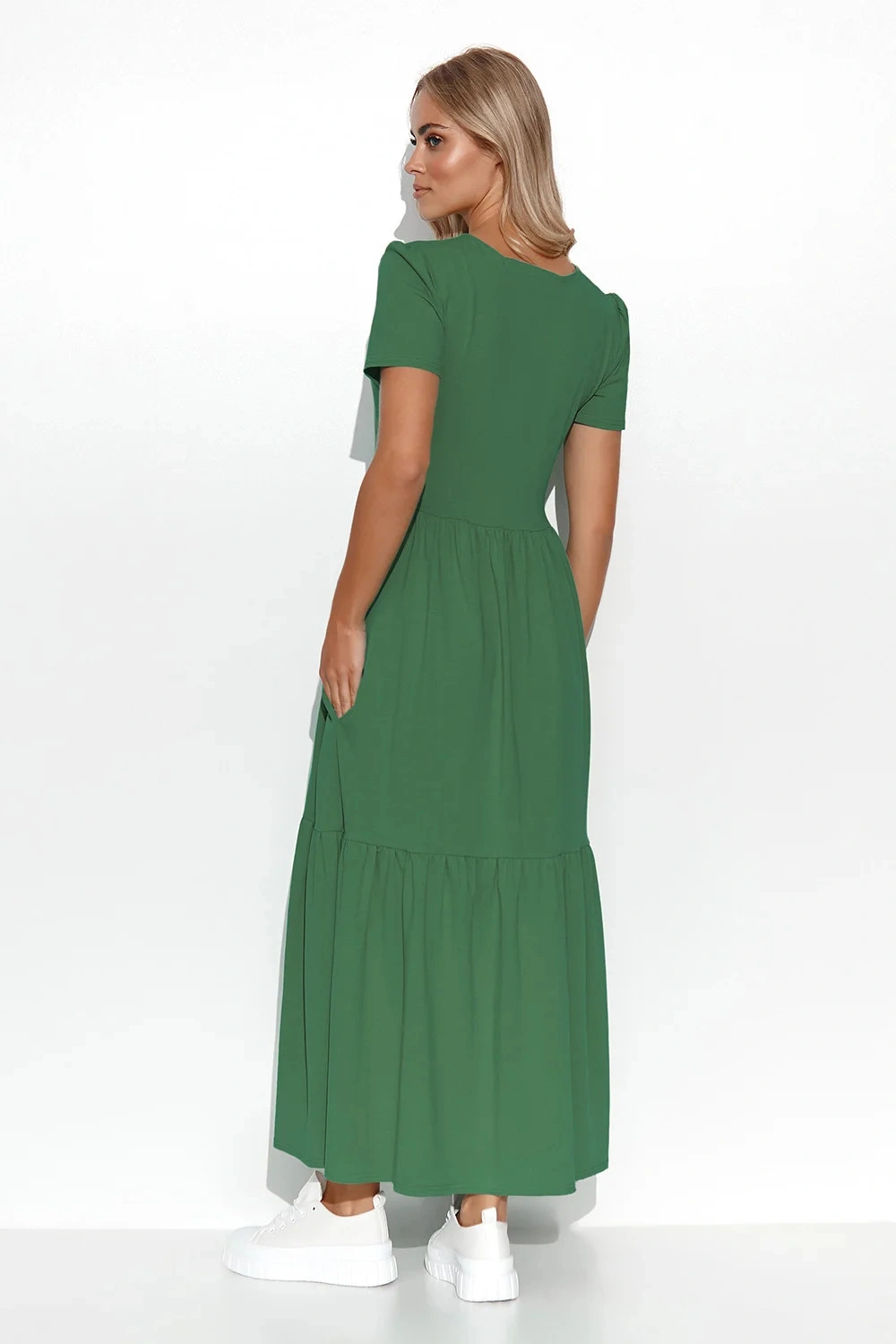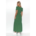 Sukně jsou nepochybně jedním z nejženskějších kusů dámského šatníku. Není divu, právě ony přidávají půvab a dívčí kouzlo. Maxi pletená sukně je ušita v velmi klasickém střihu, který z téměř každé ženy dělá píšťalku. Pohodlná pletenina zajišťuje pocit volnosti, krátký rukáv zakrývá ramena v jejich nejširších oblastech. Výstřih typu v-neck prodlužuje krk, zatímco lemování v oblasti pasu zdůrazňuje nejužší oblast ženské postavy, dodávajíc lehkost. Lehké volány umístěné na několika místech po celé délce sukně dodají romantický charakter každému stylu s touto kreací v hlavní roli. Maxi sukně v jednobarevném provedení nepotřebuje mnoho doplňků, i když je také ráda přijímá. Sportovně s oblíbeným batohem a teniskami nebo elegantně s podpatky a kabelkou.
