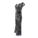 Damska sukienka wizytowa EVA LOLA z koronką i dżetami, długa, granatowa
