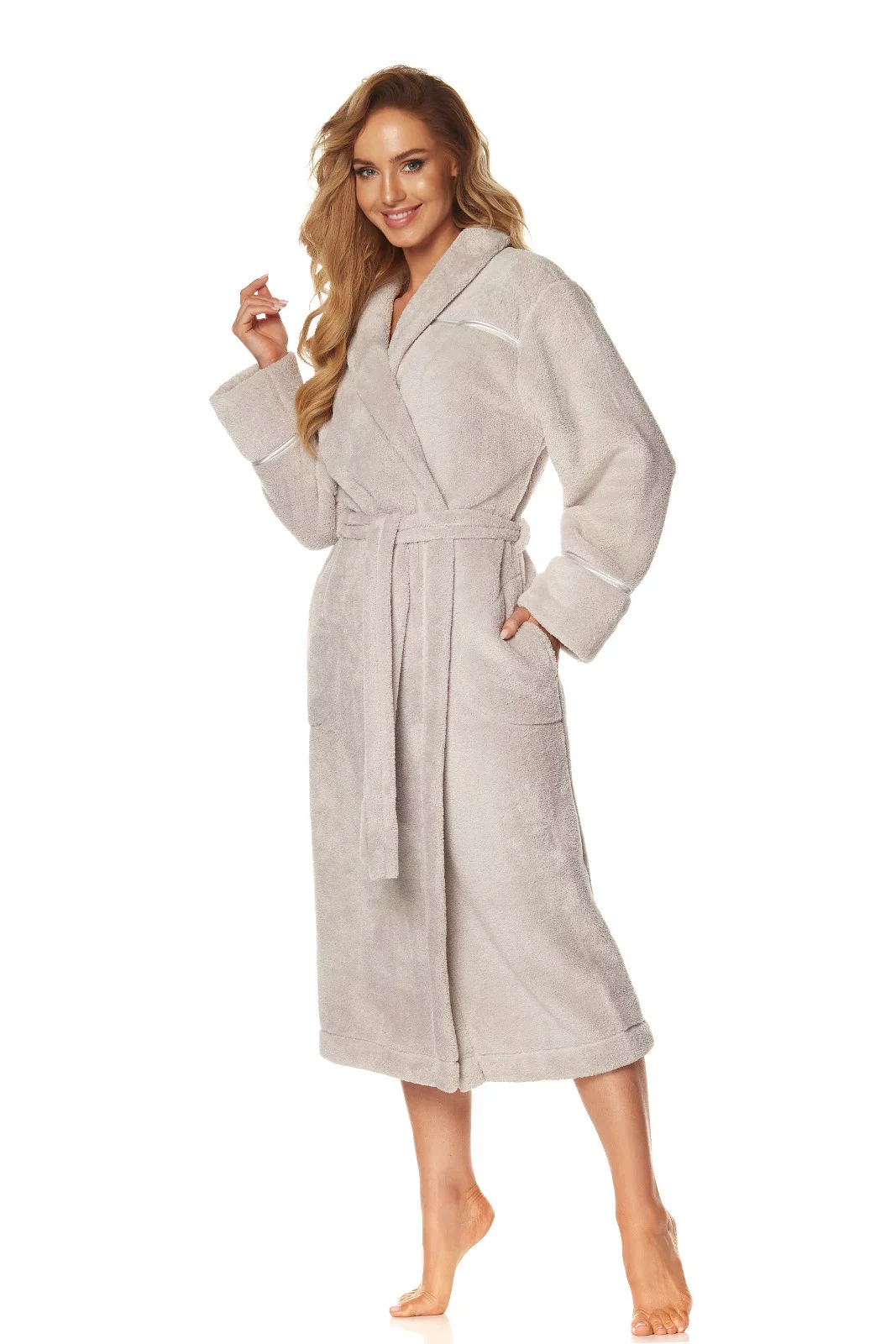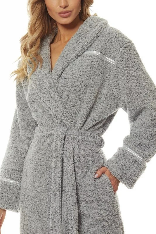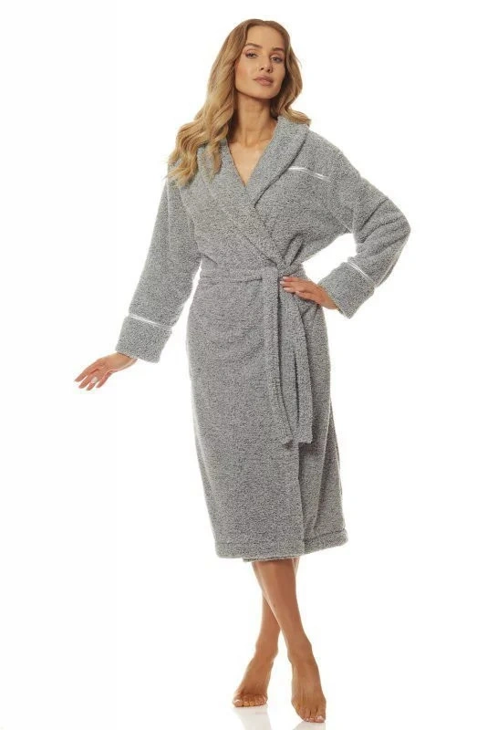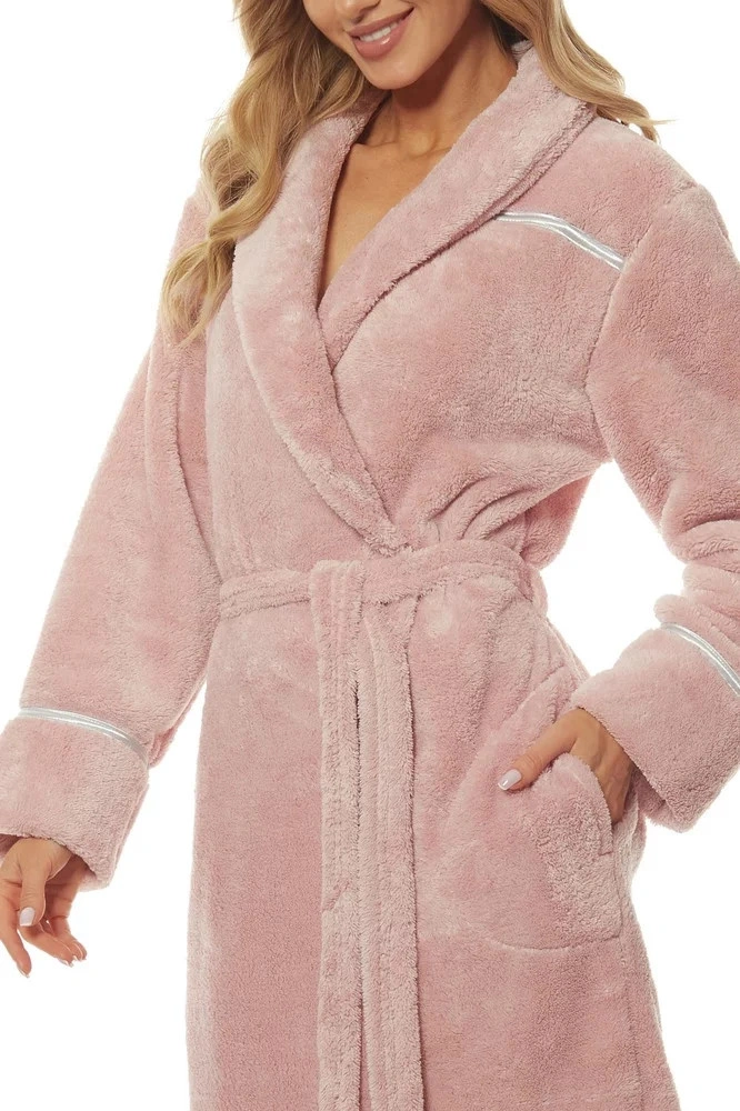 Wygodny długi szlafrok damski, który został wykonany z miękkiej tkaniny typu "soft".