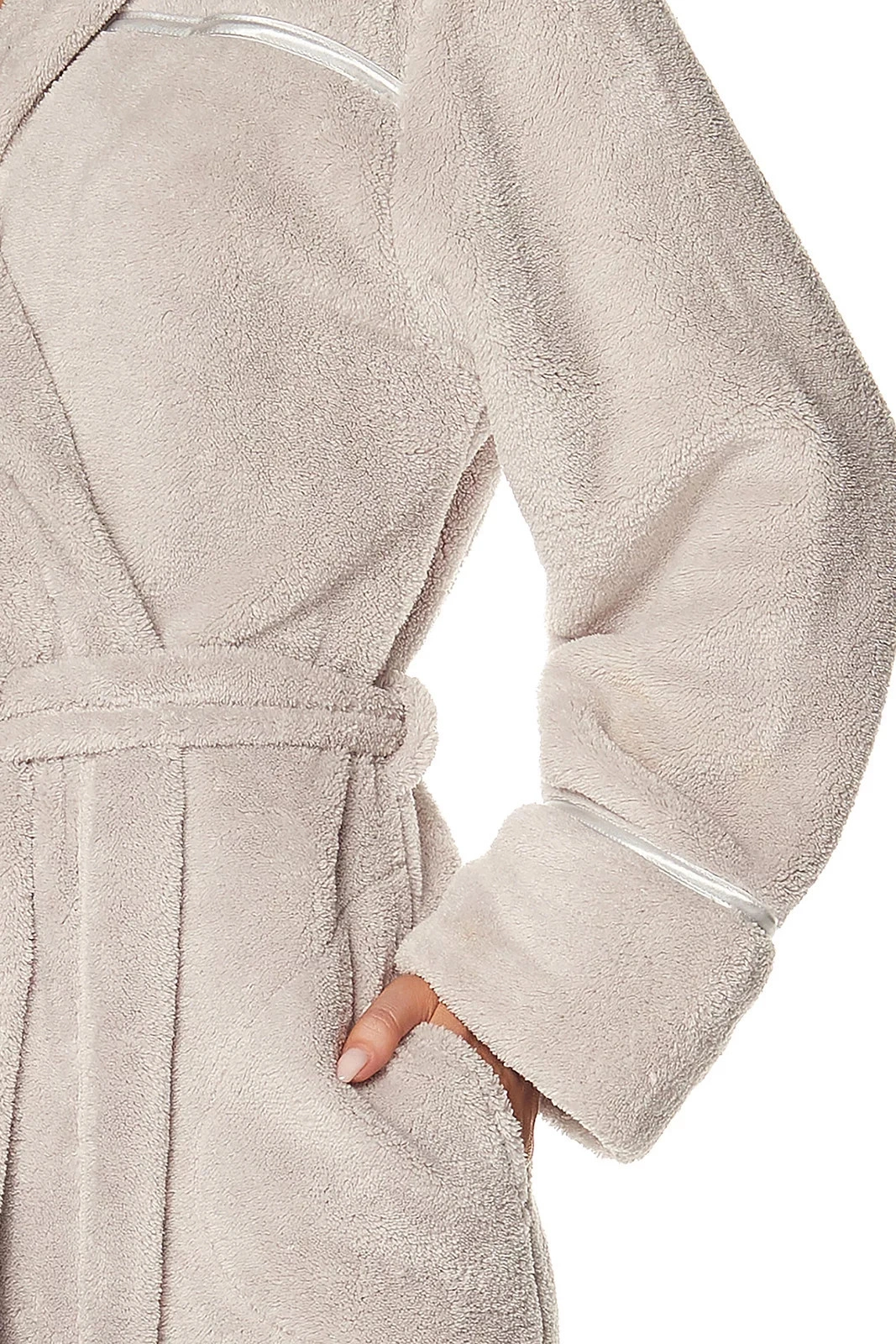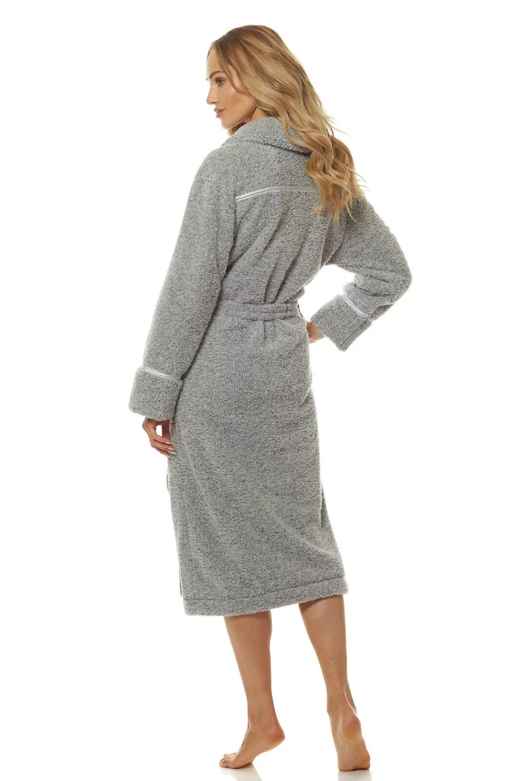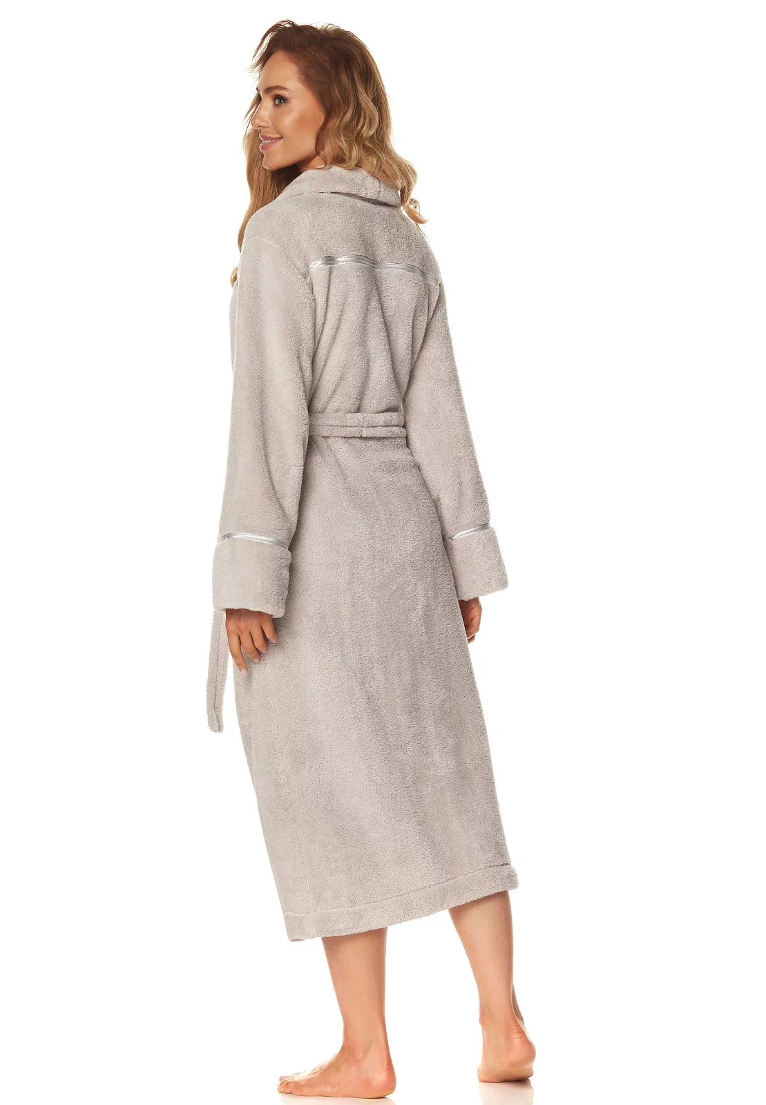 Wygodny długi szlafrok damski, który został wykonany z miękkiej tkaniny typu "soft".
