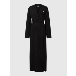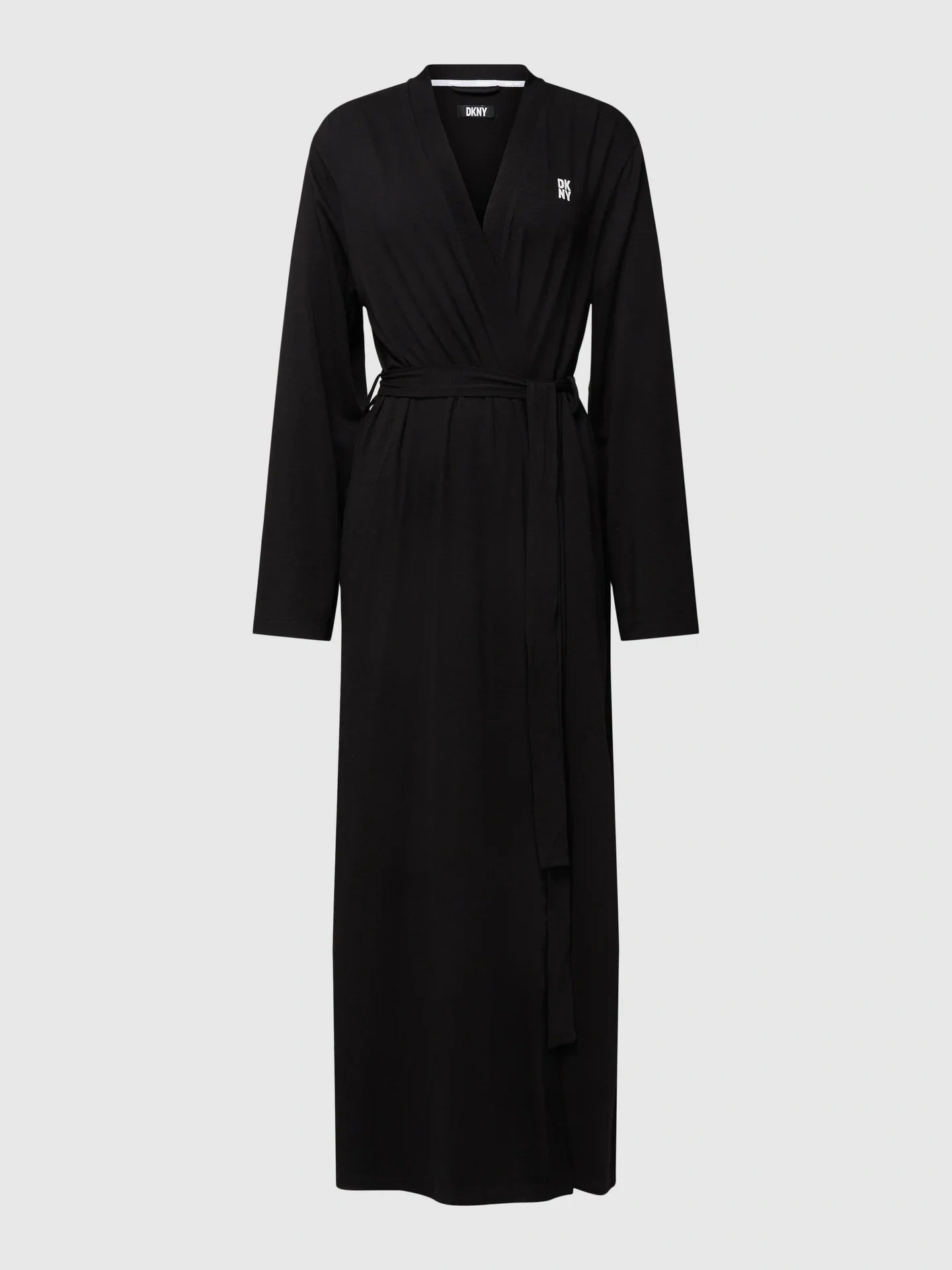 Szlafrok ma logo DKNY po lewej stronie i jest wiązany paskiem