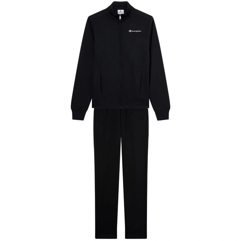Dres damski Champion Full Zip Suit czarny 118289 KK001 Dres damski Champion sprawdzi się na co dzień. Miękki w dotyku materiał o wysokiej zawartości bawełny. Dodatek poliestrowych włókien. Standardowy krój. Bluza z jednokierunkowym zamkiem. Ściągacze przy mankietach i w dolnej części bluzy. Otwarte kieszenie w bluzie. Spodnie z nogawkami wykończonymi niewielkimi rozcięciami i regulowaną sznurkiem, elastyczną talią. Spodnie bez kieszeni. Materiał: 55% bawełna, 45% poliester