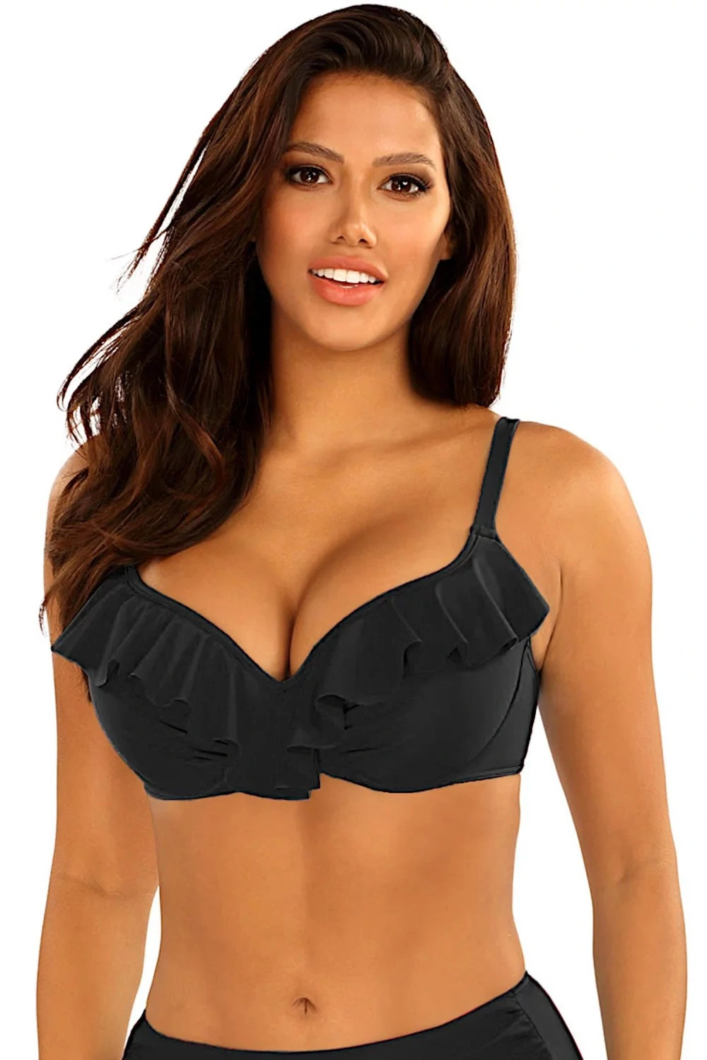 Damski dwuczęściowy strój kąpielowy 940A1 Canoy10 Self - strój kąpielowy wykonany z wygodnego, elastycznego i szybkoschnącego materiału - termicznie formowany - miseczki wzmocnione fiszbinami - górna część ozdobiona marszczeniem - regulowane ramiączka - zapięcie z tyłu - figi o klasycznym kroju - kolekcja 2023