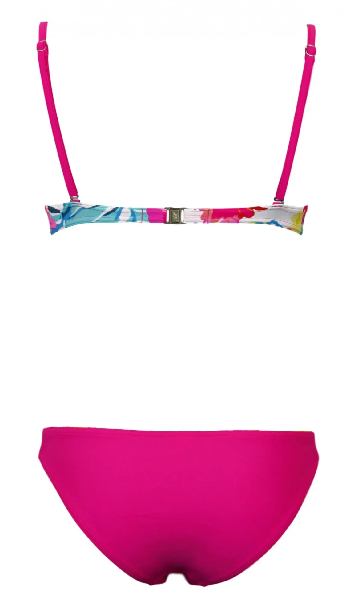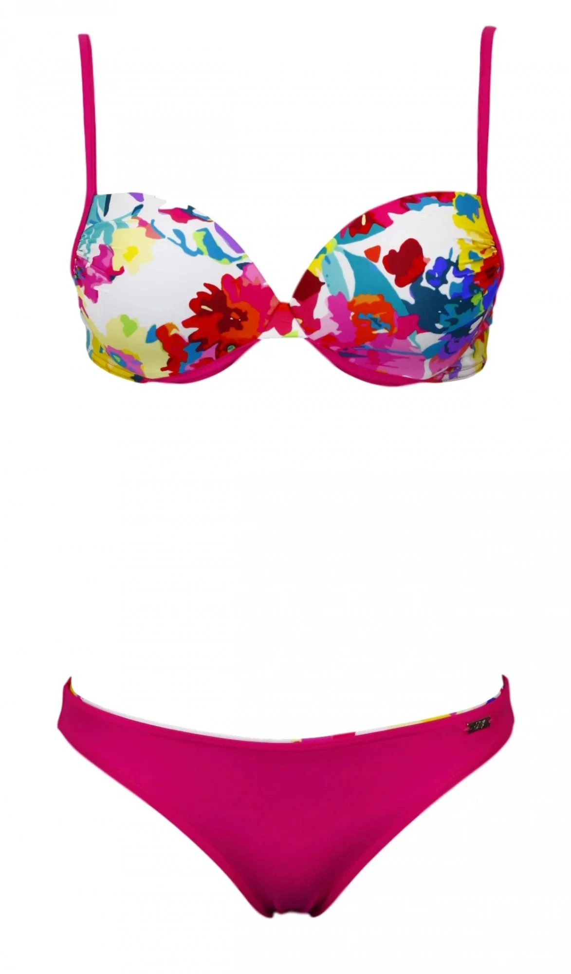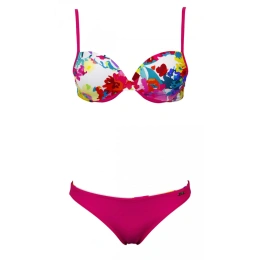 Miseczki push-up z kwiatowym nadrukiem.Paski na ramiona można przesuwać, a wiązanie można również złożyć wokół szyi.