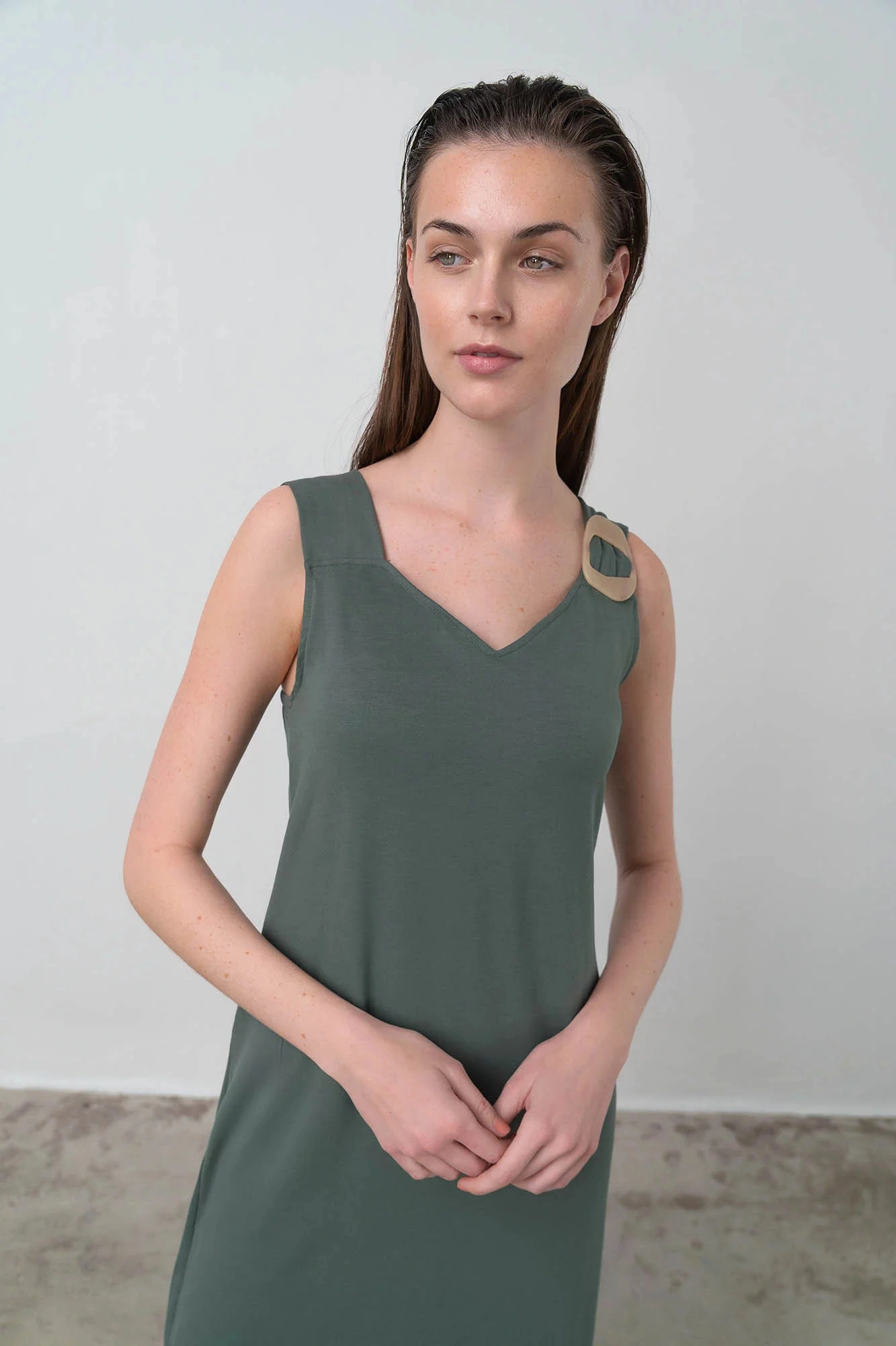 Elegancka sukienka bez ramiączek z dekoltem w kształcie litery V, czyli wszystko czego potrzebuje kobieta w gorące letnie dni. Sukienka wykonana z wysokiej jakości wiskozy z domieszką elastanu. Wiskoza charakteryzuje się wysoką chłonnością, jest przewiewna, miękka i przyjemna w dotyku, a elastan gwarantuje lepszą elastyczność tkaniny.
