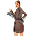 - lekki materiał w połączeniu z delikatną koronką- głęboki dekolt, wiązanie pod biustem- stringi nie wchodzą w skład zestawu