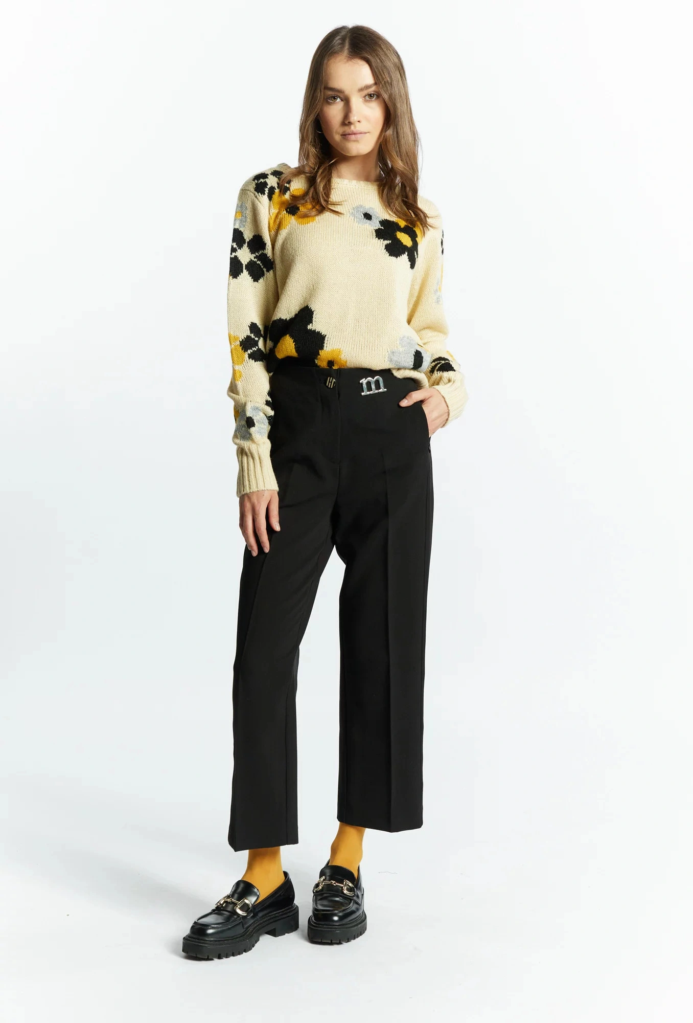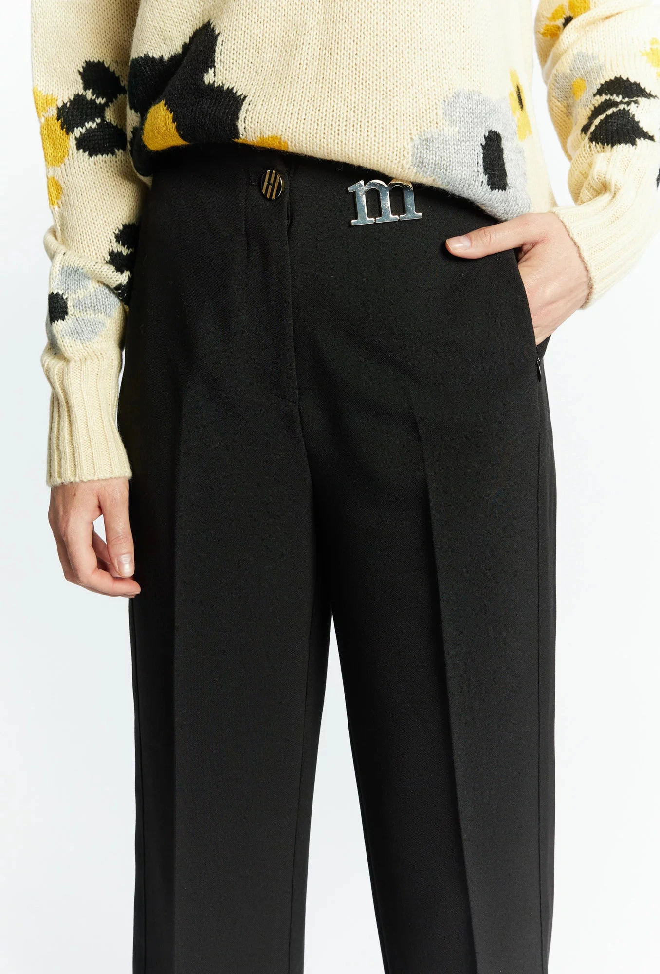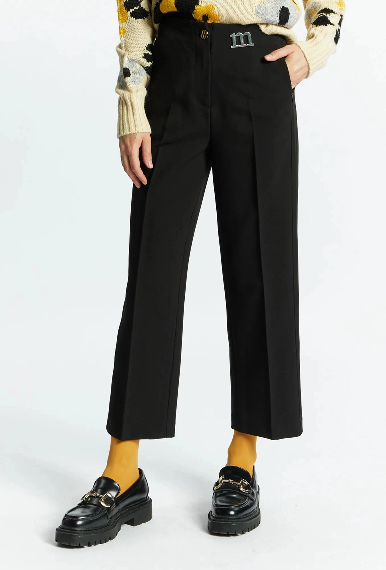 Eleganckie spodnie damskie z logo marki Monnari. Spodnie o długości 7/8 z prostą nogawką, zapinane na zamek błyskawiczny i guzik. Spodnie z krytymi kieszeniami i zamkiem błyskawicznym. Do spodni polecamy dobrać klasyczną białą bluzkę. Modelka na zdjęciu ma 177 cm wzrostu i nosi rozmiar 36.