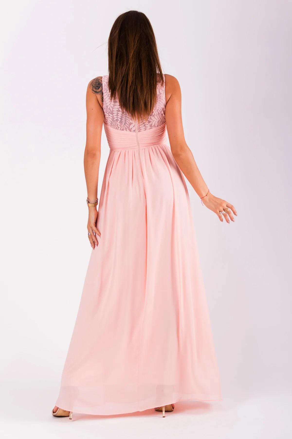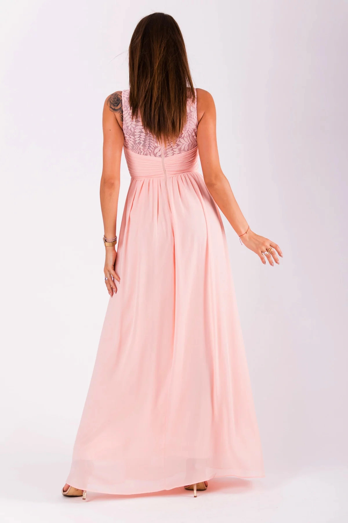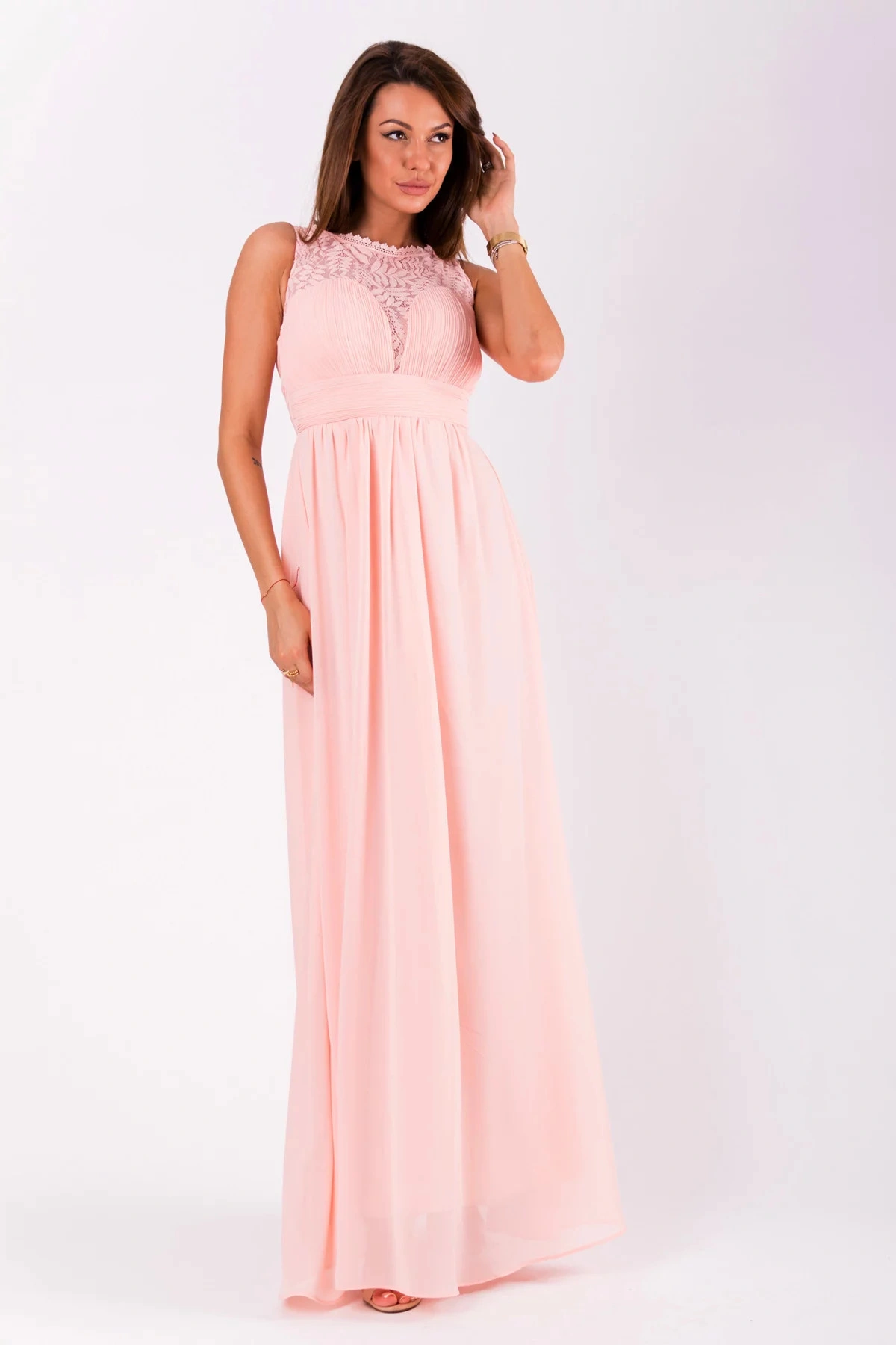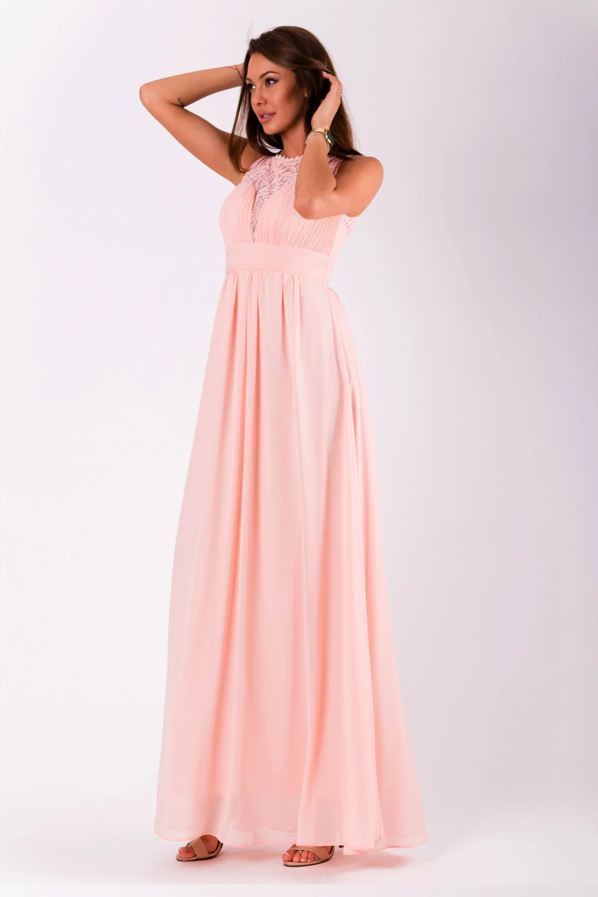 EVA&LOLA długa różowa sukienka wieczorowa bez rękawów dla kobiet
