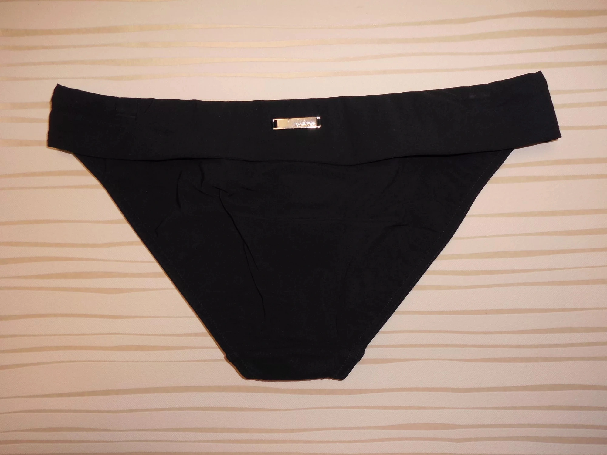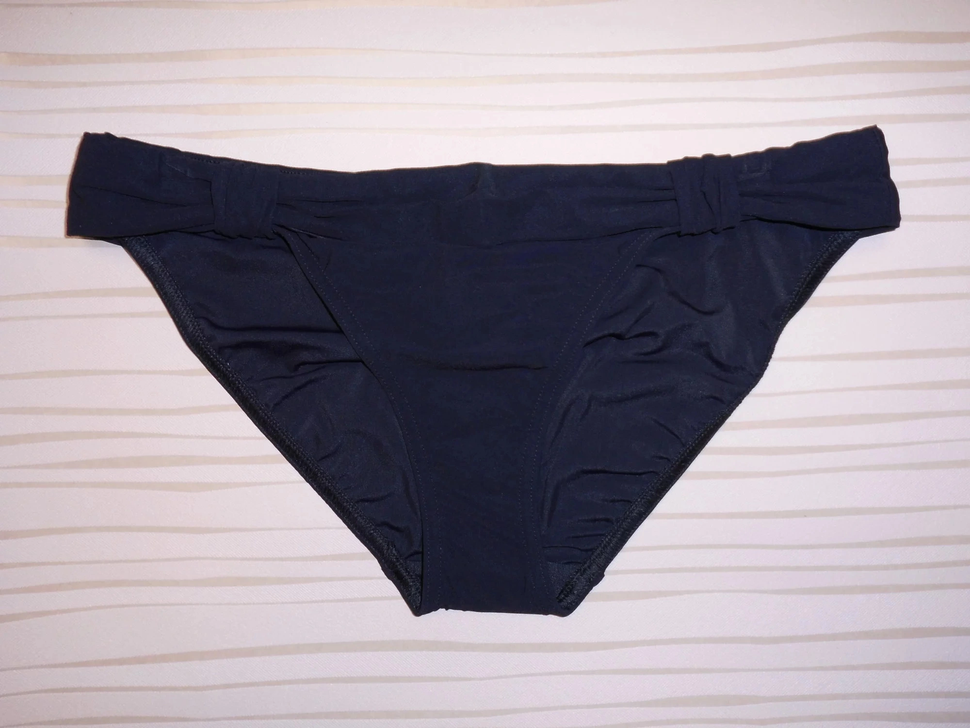dół stroju kąpielowego jest nisko wycięty, ozdobiony delikatnym marszczeniem w talii. Tył stroju kąpielowego ozdobiony jest logo Calvin Klein. Materiał 72% nylon, 28% lycra.