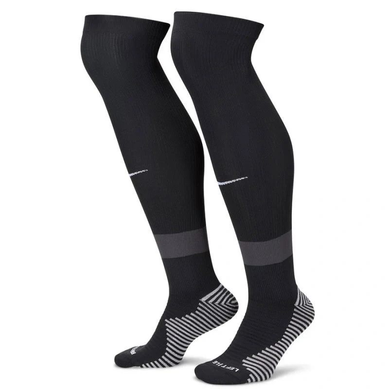 Wspierająca technologia Dri-FIT na bieżąco odprowadza pot z powierzchni Twojej skóry, pozostawiając przyjemne uczucie suchości, co szczególnie docenisz podczas intensywnego treningu. Przylegający fason z mieszanki włókien wspiera mięśnie, amortyzując uderzenia i chroniąc przed otarciami. Elastyczna konstrukcja, kończąca się ponad kolanem zmniejsza zmęczenie stawów i pomaga ustabilizować stopy w piłkarskich butach. Anatomiczny krój lewej i prawej skarpety gwarantuje idealne dopasowanie do kształtu stopy, a dynamiczne wsparcie łuku podnosi komfort noszenia.