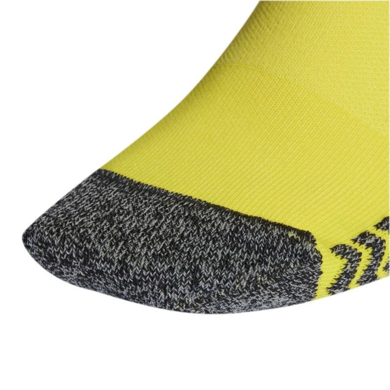 Getry piłkarskie adidas AdiSocks 23 żółte IB7797 Wybierz getry piłkarskie adidas i podnieś swój komfort gry. Przyjemna w dotyku, lekka dzianina z elastycznymi włóknami została wyposażona w technologię Aeroready, która sprawnie odprowadza wilgoć z powierzchni skóry. Materiał o kroju dopasowującym się do prawej i lewej stopy zyskał konstrukcję Formotion, która ułatwia szybkie zmiany kierunku i optymalizuje ruch. Technologia Aeroready. Amortyzacja w pięcie i palcach stanowi dodatkową wyściółkę w miejscach najbardziej narażonych na otarcia. Ten model jest wykonany z serii materiałów pochodzących z recyklingu i zawiera co najmniej 60% materiałów z odzysku. Długość ko kolan. Materiał: 84% poliester z recyklingu, 11% bawełna, 5% elastan