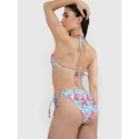 Model halter bikini ma trójkątne, lekko usztywniane miseczki, które delikatnie modelują biust. Wiązanie na szyi i plecach umożliwia indywidualne dopasowanie do ciała, a wyjmowane wkładki pozwalają dostosować poziom wsparcia i kształt miseczek.