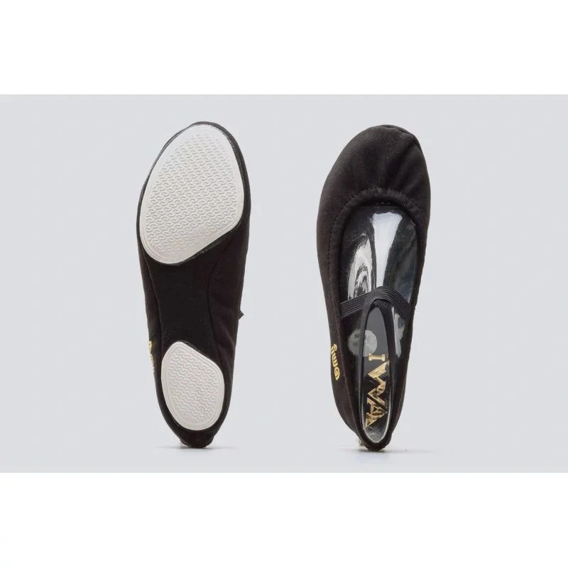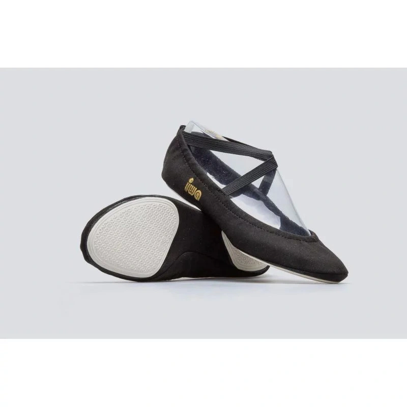 - Sportowe baletki gimnastyczne idealne do ćwiczeń na równoważni. Nowy czarny model ze złotym logo IWA Gymnastics wygląda wyjątkowo na stopach każdego sportowca.