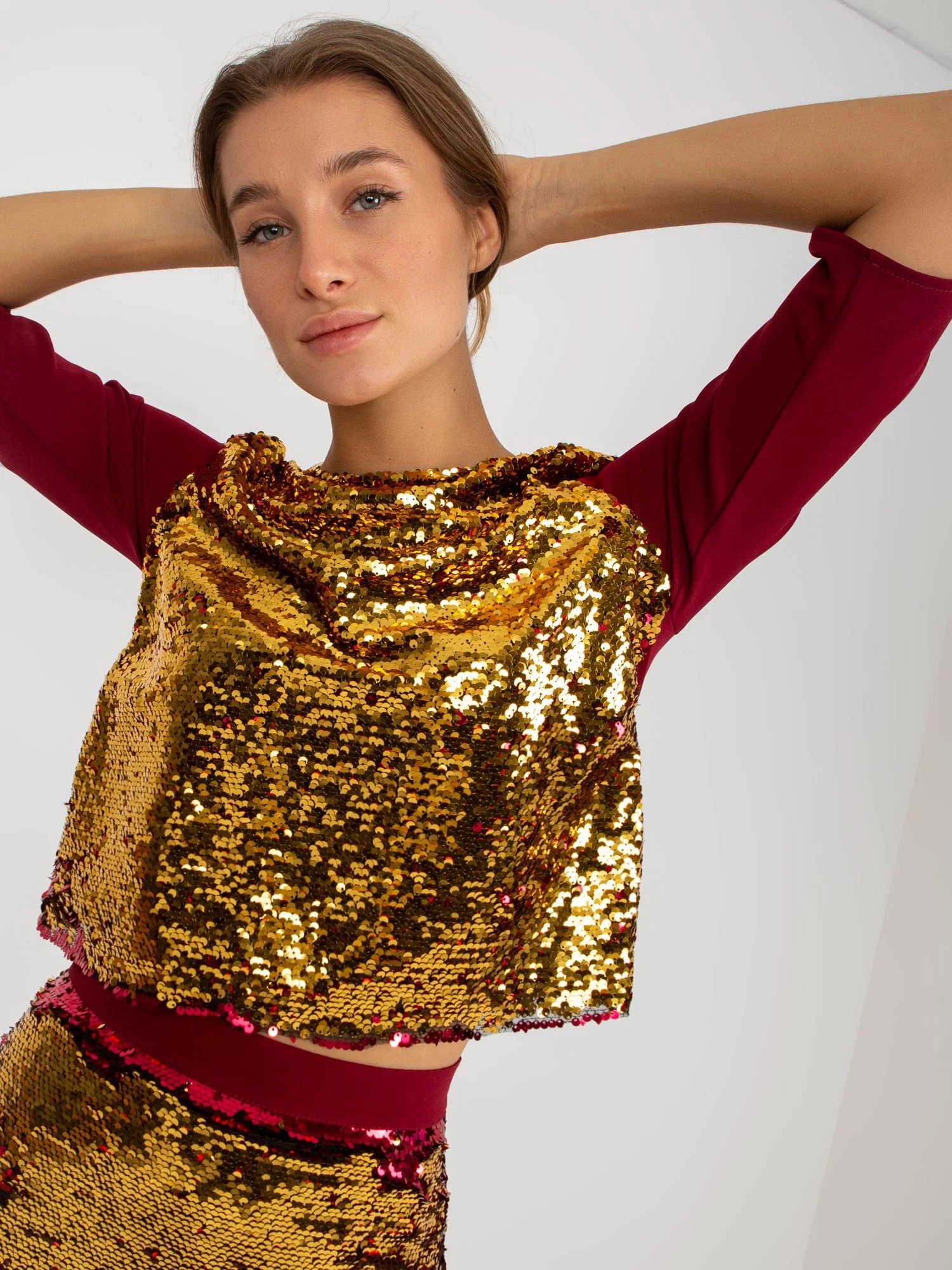 Wymiary bluzki w rozmiarze 36 mierzone na płasko: szerokość pod pachami - 44 cm, długość całkowita - 49 cm, długość rękawa - 36 cm.