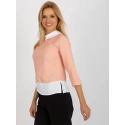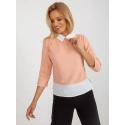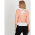 Brzoskwiniowa bluzka wizytowa z krawatem.