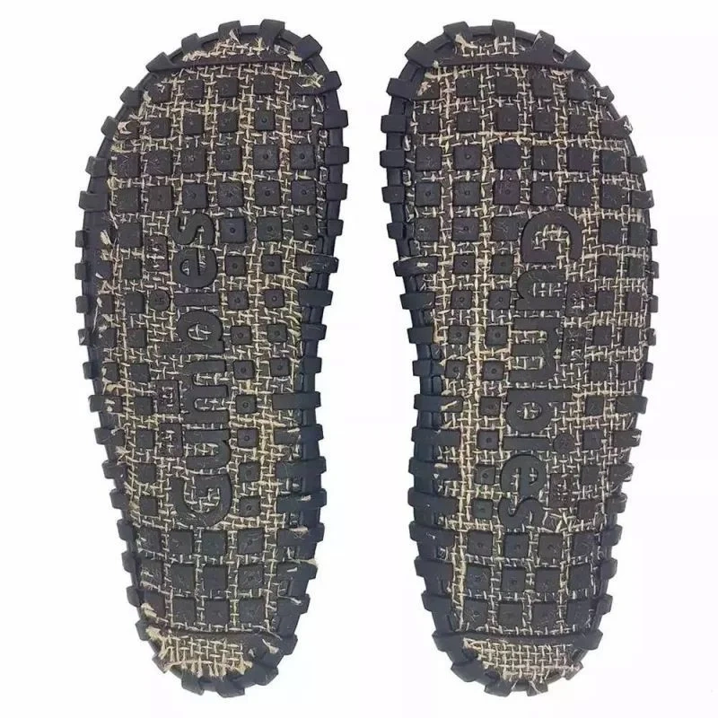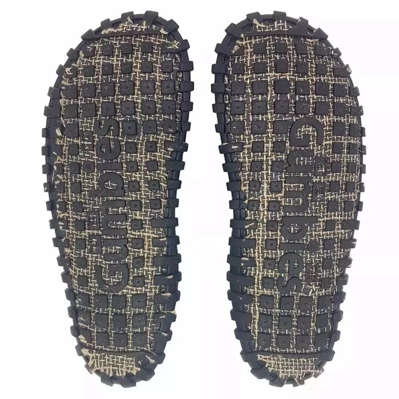 Podeszwa z gumy z recyklingu i juty.
