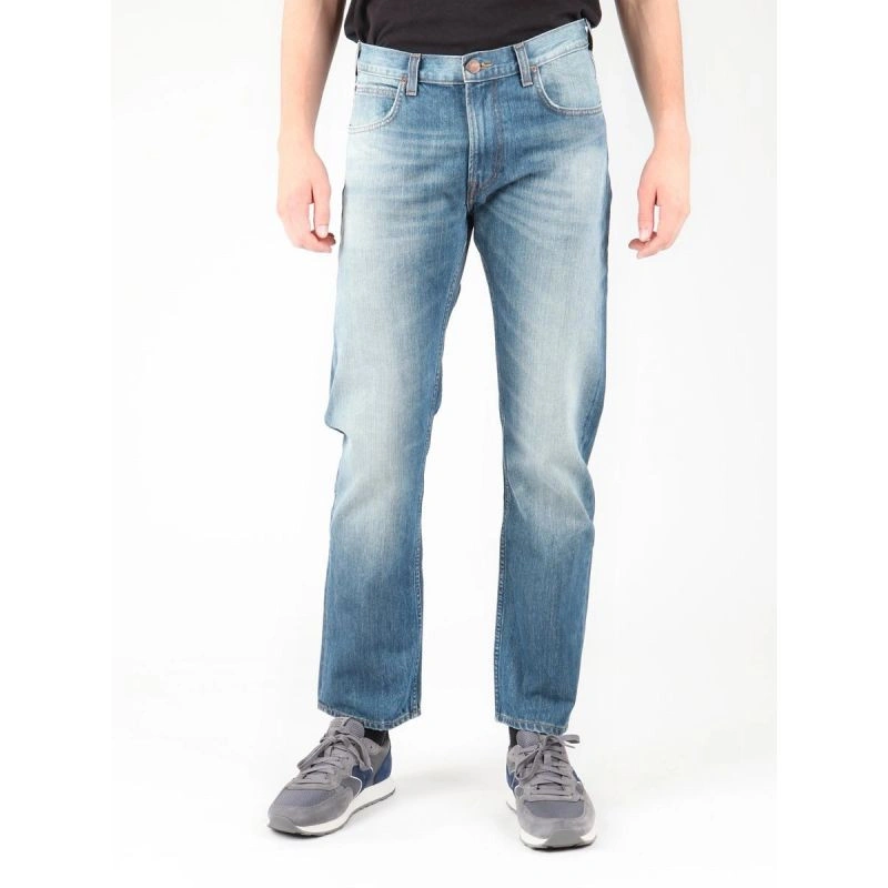 Męskie spodnie z prostą nogawką. Duże kieszenie z przodu i z tyłu. Logo firmy Lee ze skóry z tyłu na pasku.Materiał: 100% bawełna