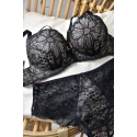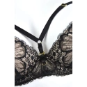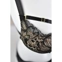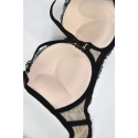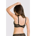 Beżowe miseczki pokryte delikatną, czarną koronką, wewnętrzna część z dużą wkładką zbierającą i unoszącą biust.