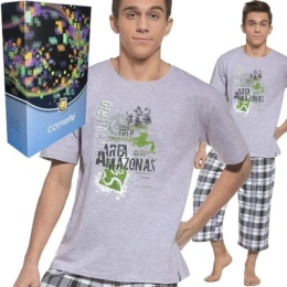Juniorska chłopięca 3/4 176piżama Amatonas 554/15 szaro-zielona - Cornette