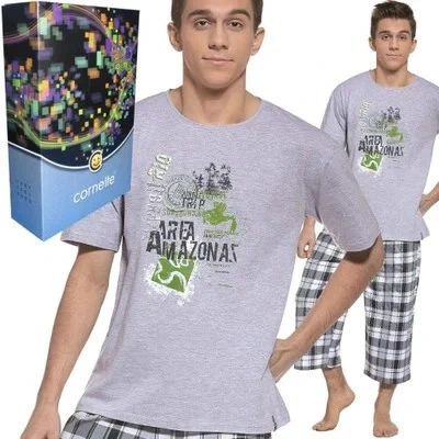 Juniorska piżama chłopięca Amatonas 554/15 szaro-zielona - Cornette Skład materiału: 100% bawełna.
