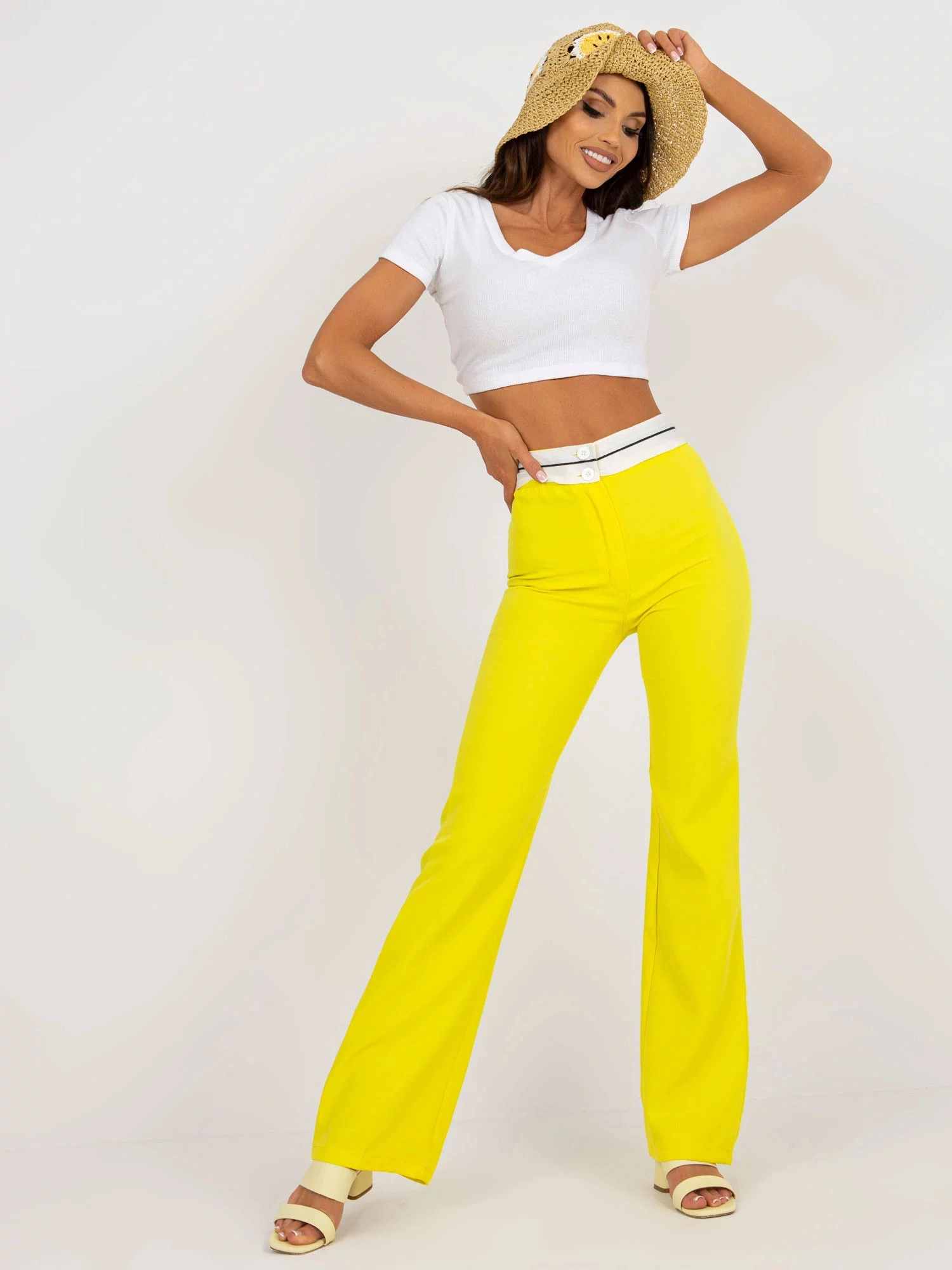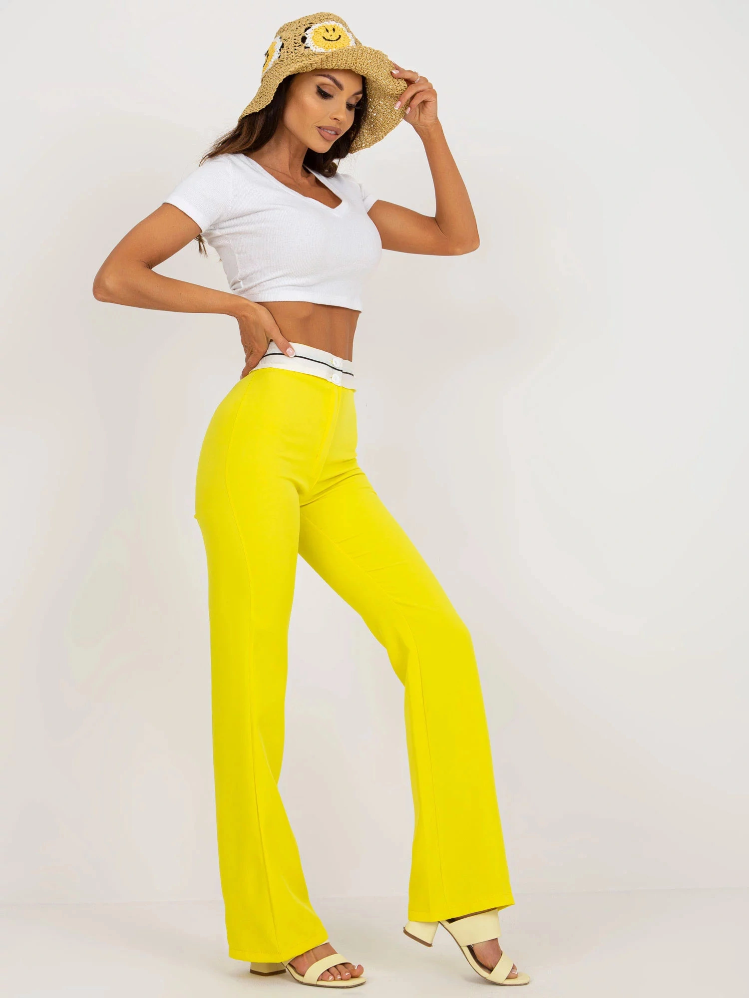 Żółte spodnie garniturowe wykonane z tkaniny z kantem.