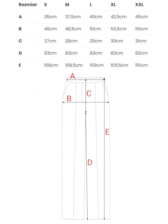 | E | 108cm | 108,5cm | 109cm | 109,5cm | 110cm |