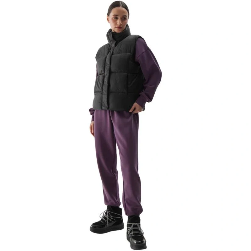Kamizelka damska 4F F140 głęboka czerń 4FWAW24TVJAF140 Kamizelka damska 4F sprawdzi się w okresie przejściowym. Krój oversize luźno układa się na sylwetce i zapewnia swobodę. Fason sięgający do bioder. Gładka, poliestrowa podszewka. Hydrofobowa powłoka materiału zewnętrznego ogranicza wchłanianie wilgoci. Wysoki kołnierz. 2 otwarte kieszenie boczne. Jednokierunkowy zamek główny z wewnętrzną plisą przeciwwiatrową. Regulacja obwodu dołu za pomocą tunelowego ściągacza ze stoperami. Wykonana z materiału syntetycznego, który jest trwały i łatwy w pielęgnacji. Wypełnienie z puchu syntetycznego zapewnia odpowiednie właściwości izolacyjne nawet w wilgotnych warunkach.