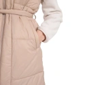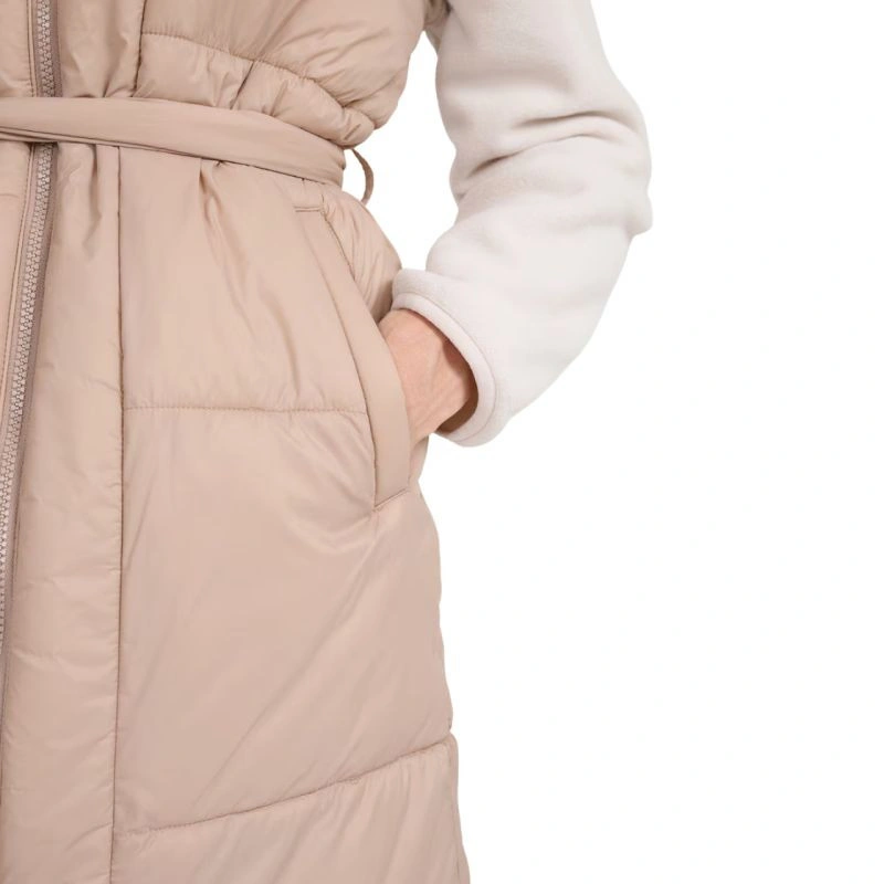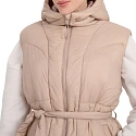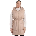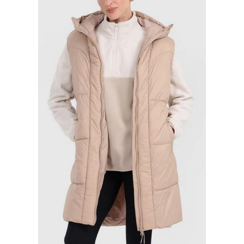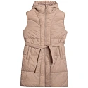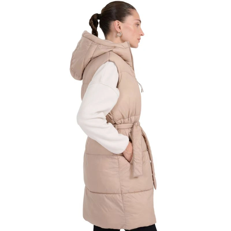 - Długa kamizelka z gładką podszewką i paskiem sprawdzi się w zróżnicowanych warunkach atmosferycznych, dbając o komfort cieplny i pełną swobodę ruchów.
